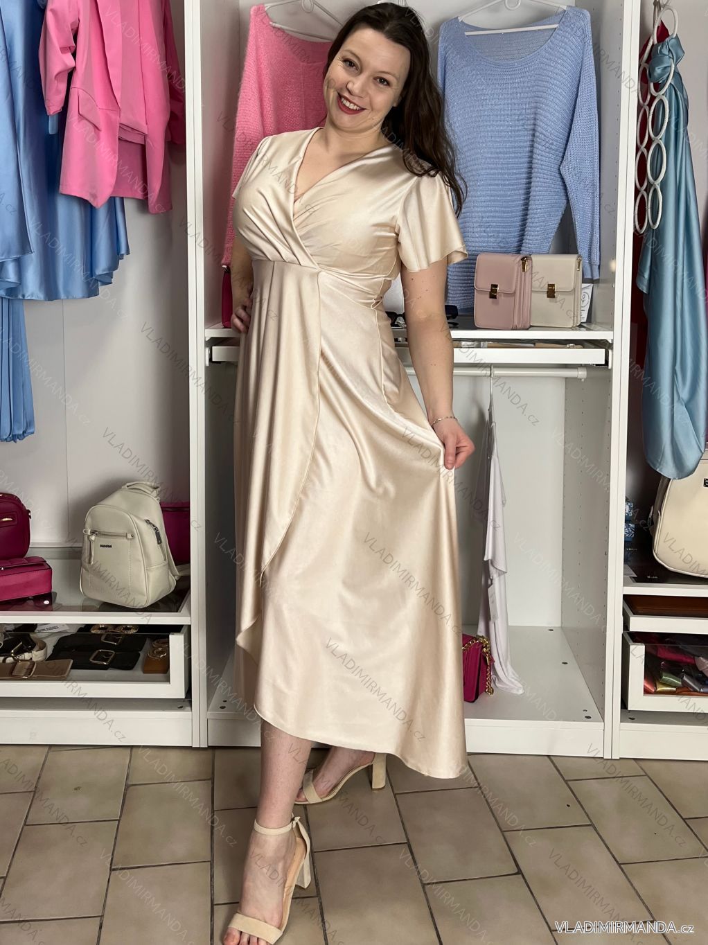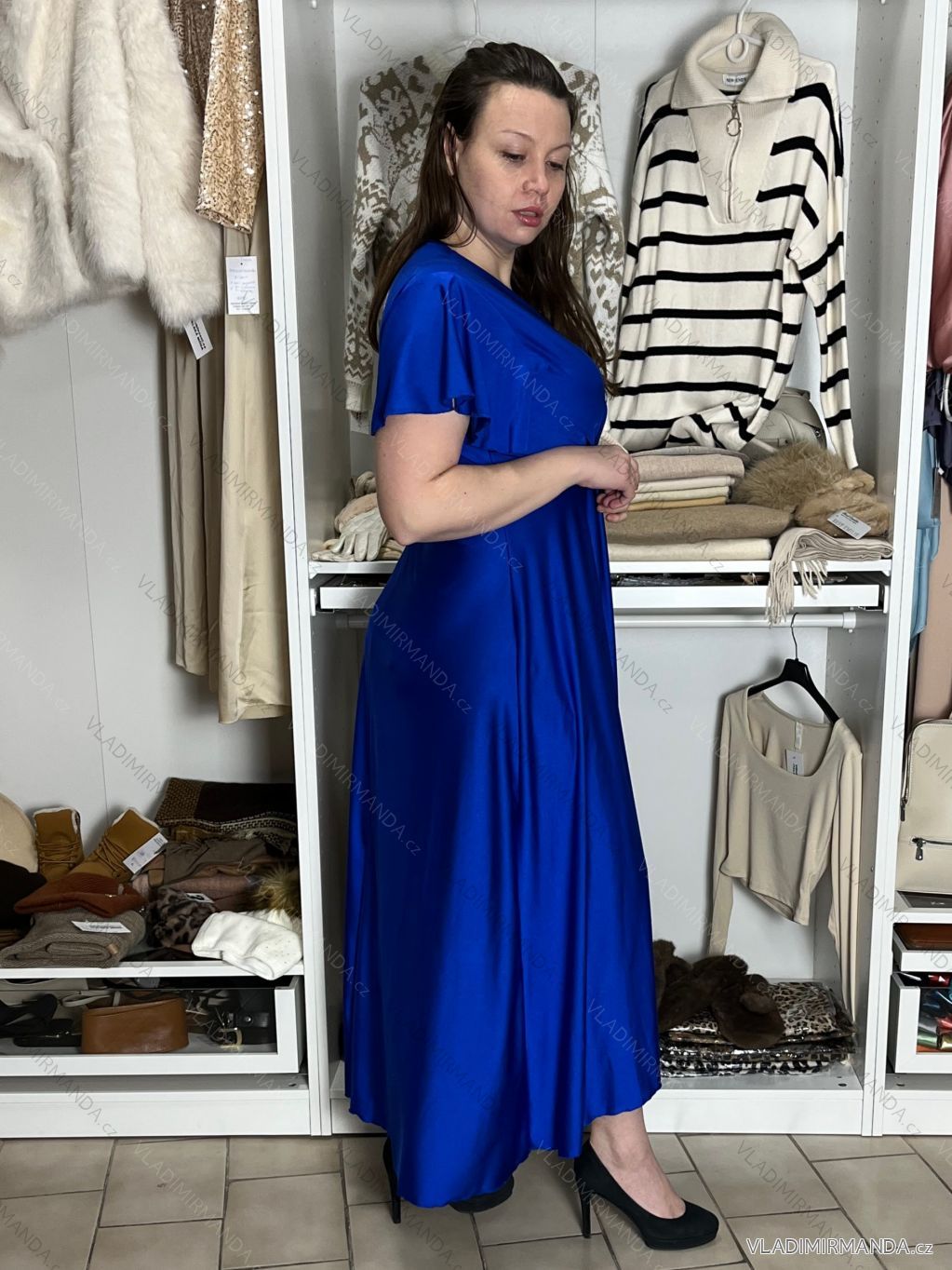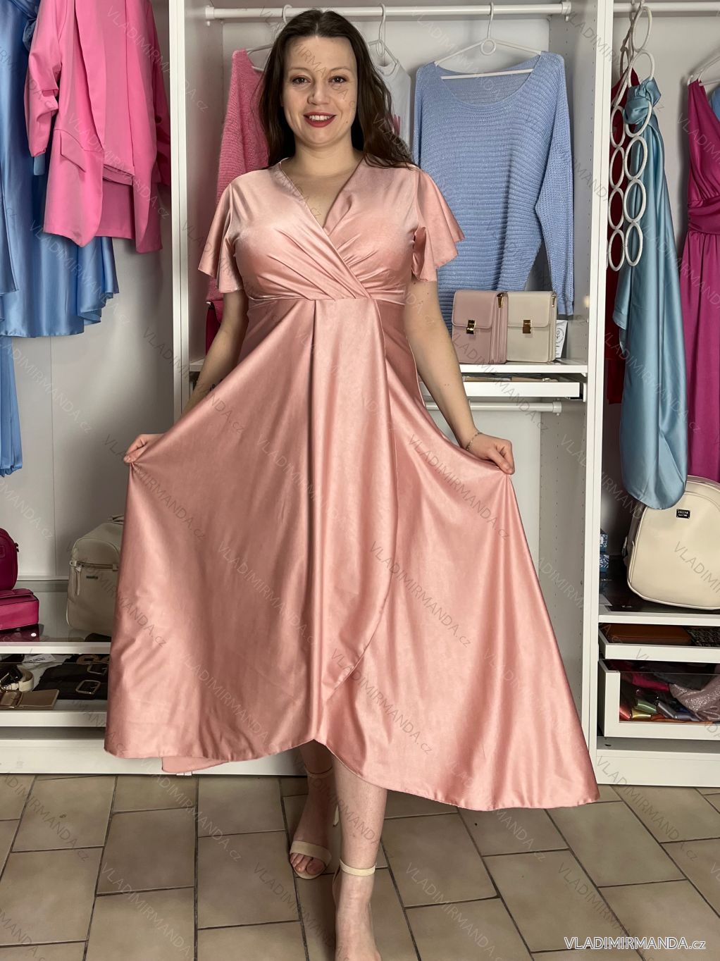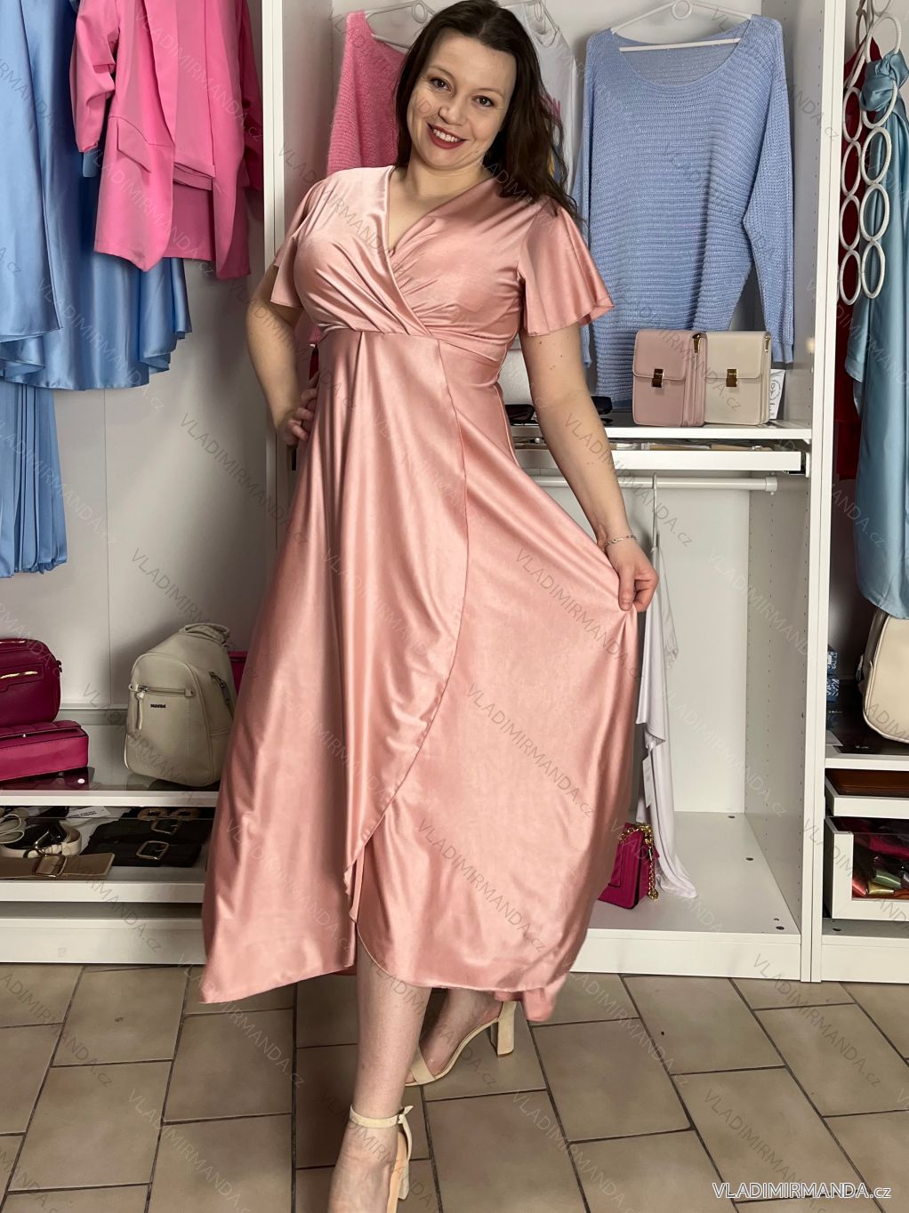 TOVAR (120833) > oblečenie dámske (81900) > šaty (30751) > Šaty dlhé maxi (8331) > Šaty dlhé maxi krátky rukáv (3104) > Šaty dlhé spoločenské saténové krátky rukáv dámske ADINA (38/40/42 ONE SIZE) TALIANSKA MÓDA IM425896
