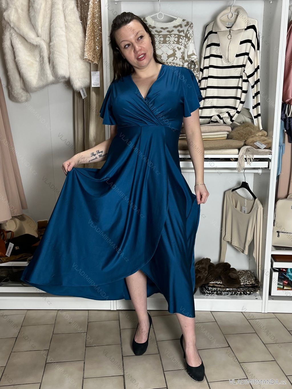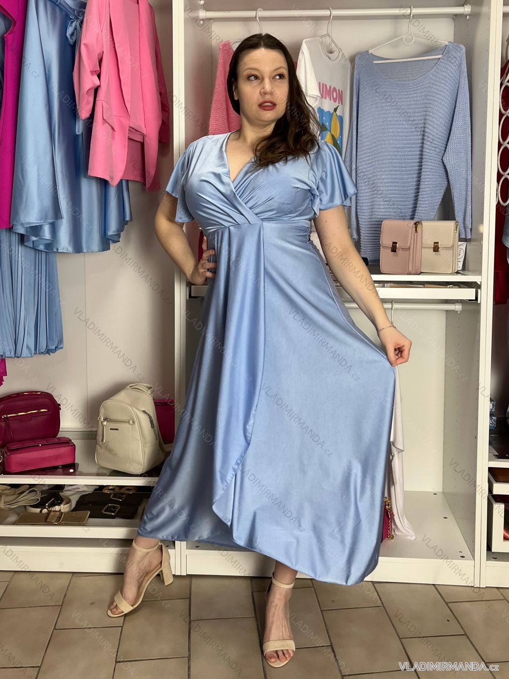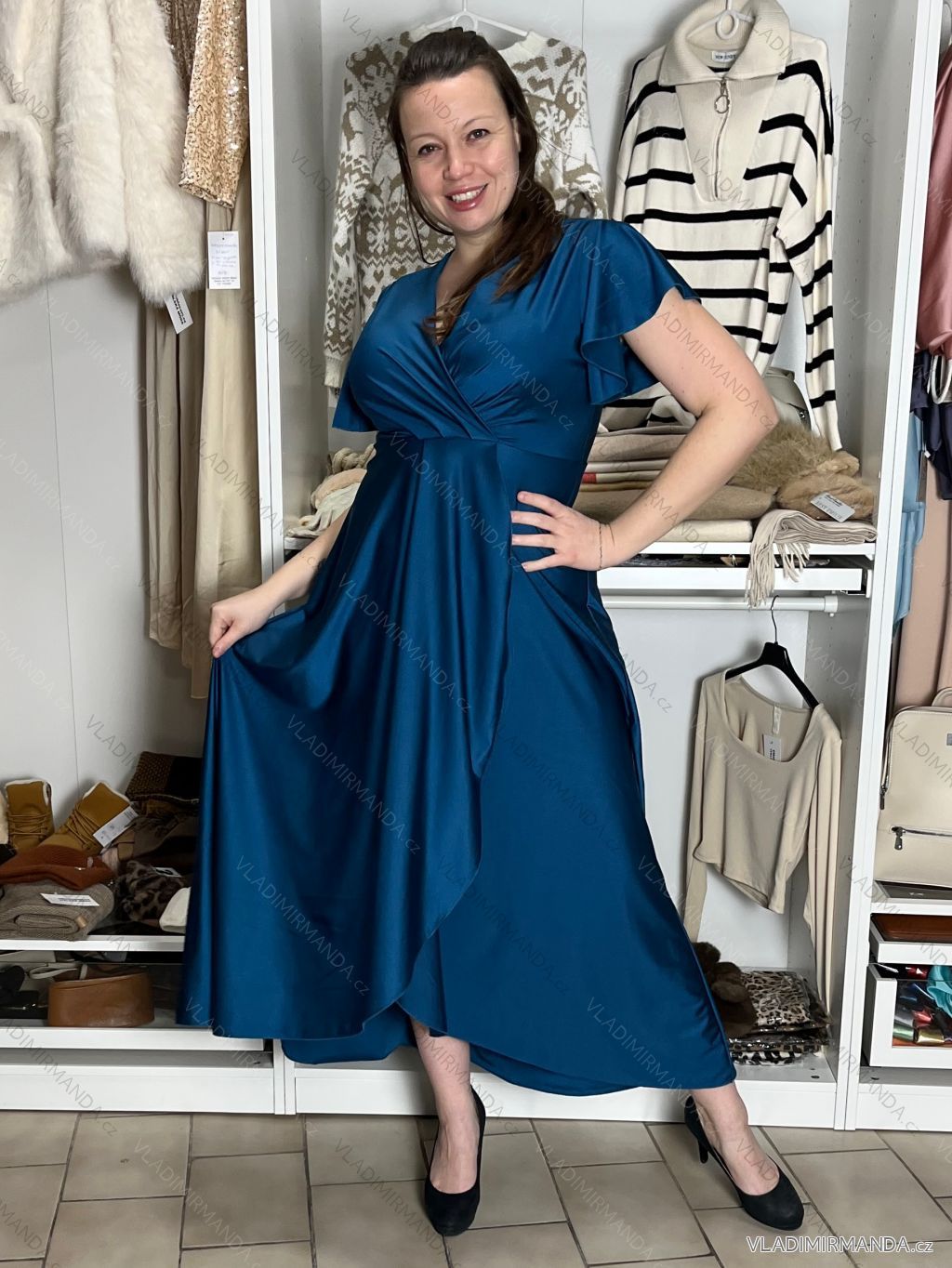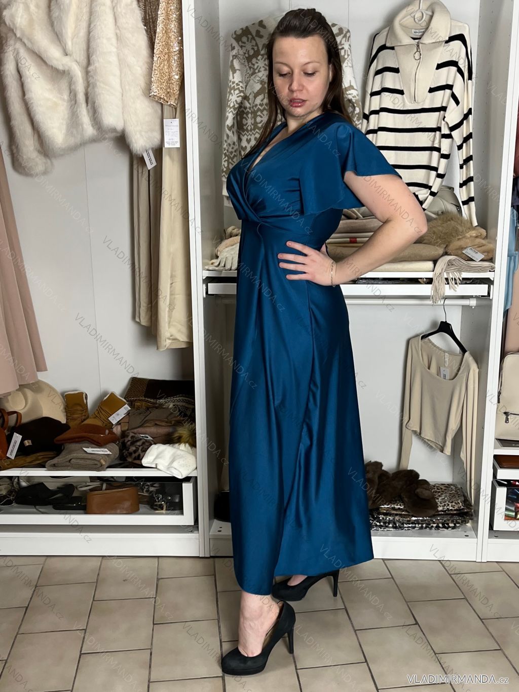 TOVAR (120833) > oblečenie dámske (81900) > šaty (30751) > Šaty dlhé maxi (8331) > Šaty dlhé maxi krátky rukáv (3104) > Šaty dlhé spoločenské saténové krátky rukáv dámske ADINA (38/40/42 ONE SIZE) TALIANSKA MÓDA IM425896