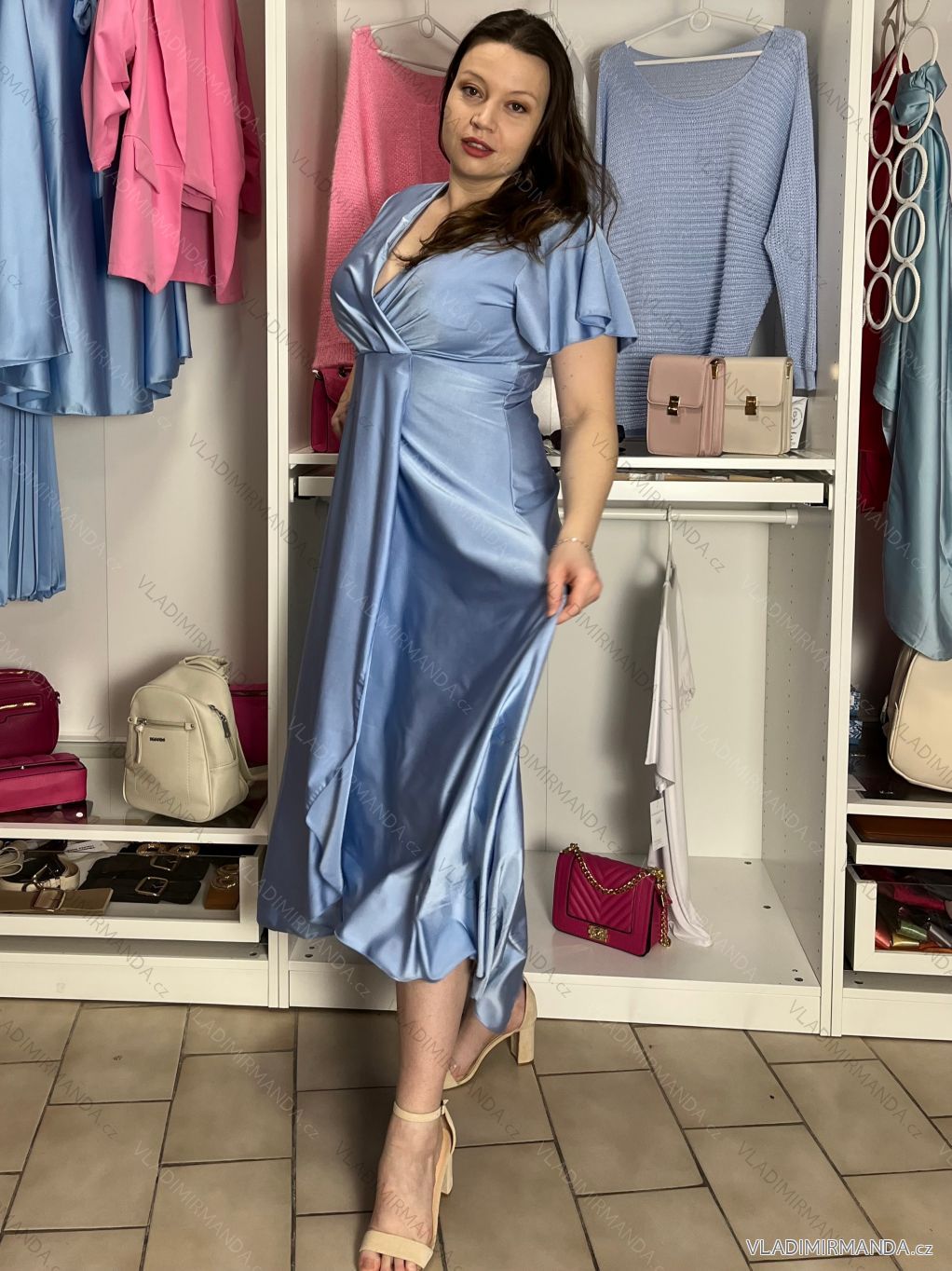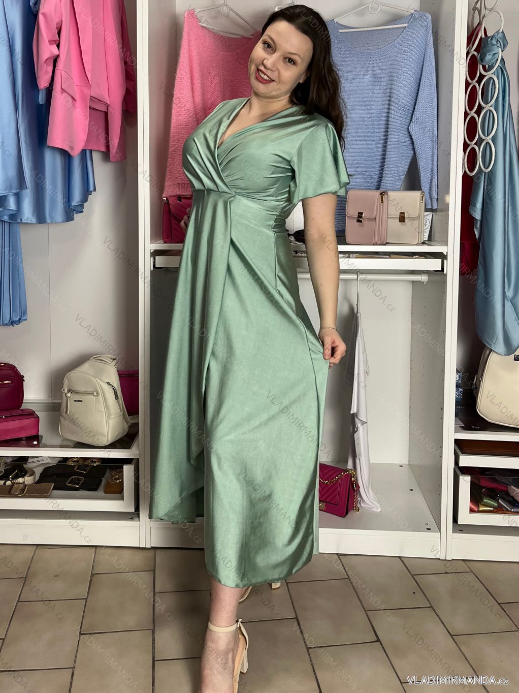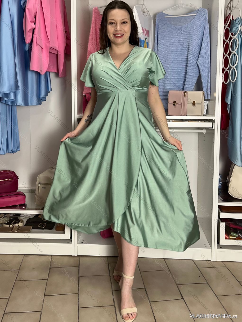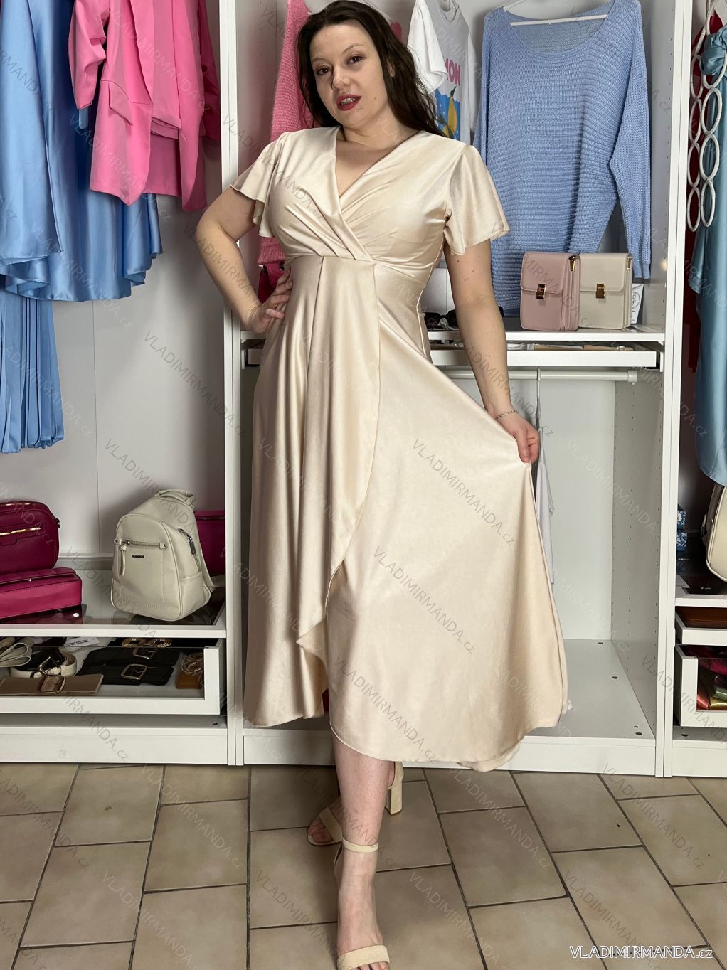 TOVAR (120833) > oblečenie dámske (81900) > šaty (30751) > Šaty dlhé maxi (8331) > Šaty dlhé maxi krátky rukáv (3104) > Šaty dlhé spoločenské saténové krátky rukáv dámske ADINA (38/40/42 ONE SIZE) TALIANSKA MÓDA IM425896