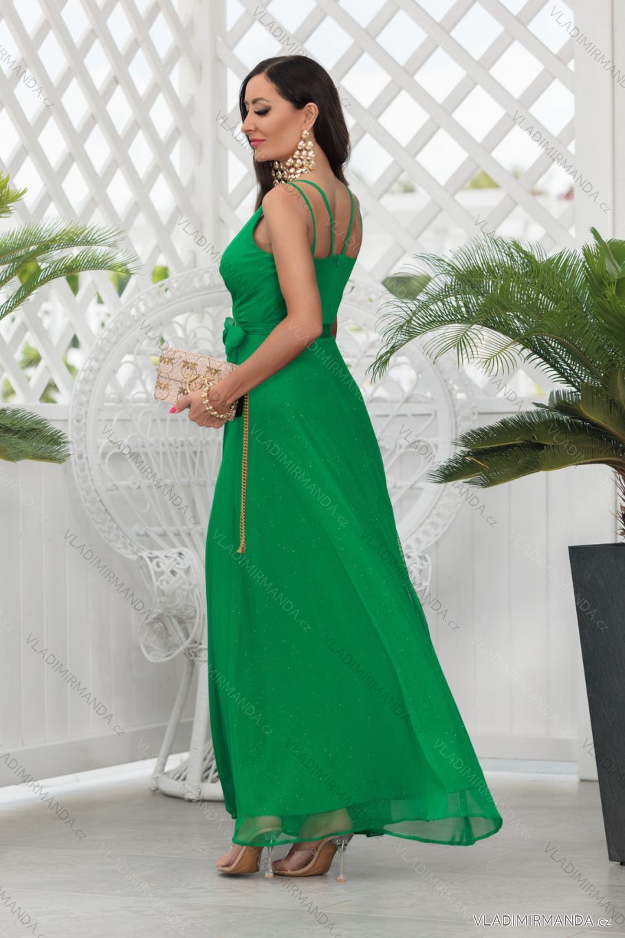 TOVAR (125033) > oblečenie dámske (81706) > šaty (30867) > Šaty dlhé maxi (8180) > Šaty dlhé maxi na ramienka (2281) > Šaty dlhé spoločenské trblietavé na ramienka dámske (32-42) POLSKÁ MÓDA PMLEL24JASMIN4 smaragdová 42