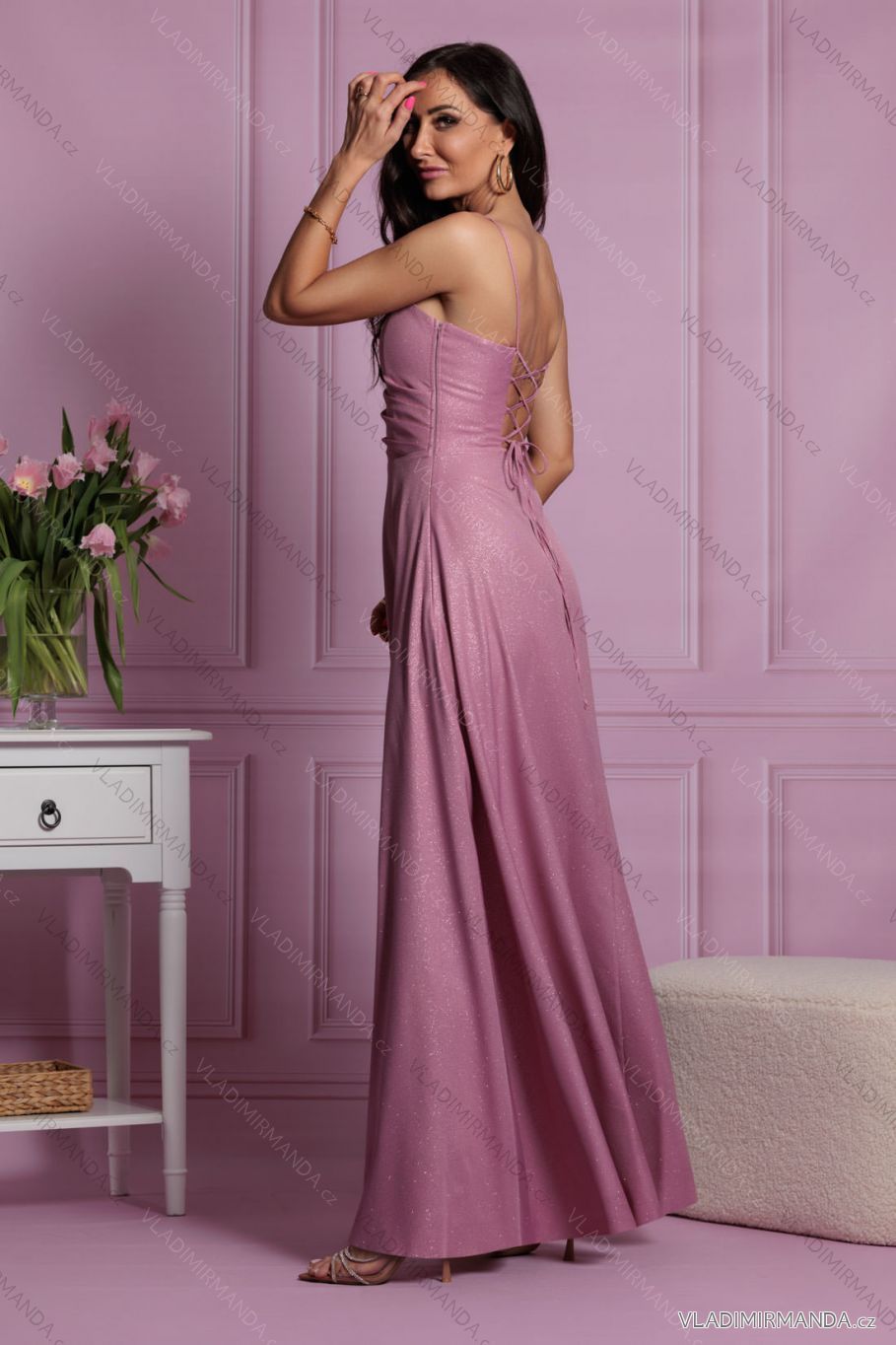 TOVAR (120702) > oblečenie dámske (81785) > šaty (30714) > Šaty dlhé maxi (8332) > Šaty dlhé maxi na ramienka (2479) > Šaty dlhé spoločenské trblietavé na ramienka dámske (34-42) POLSKÁ MÓDA PMLEL24NATHALIEB7 ružová 34