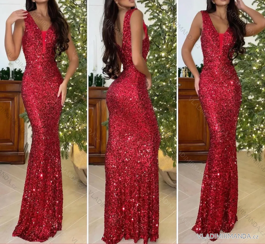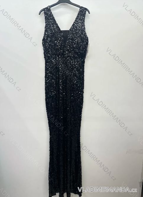TOVAR (125300) > oblečenie dámske (81928) > šaty (30934) > Šaty dlhé spoločenské trblietavé na ramienka dámske (S/M/L ONE SIZE) TALIANSKA MÓDA IMPSH246060A/DUR čierna S/M/L