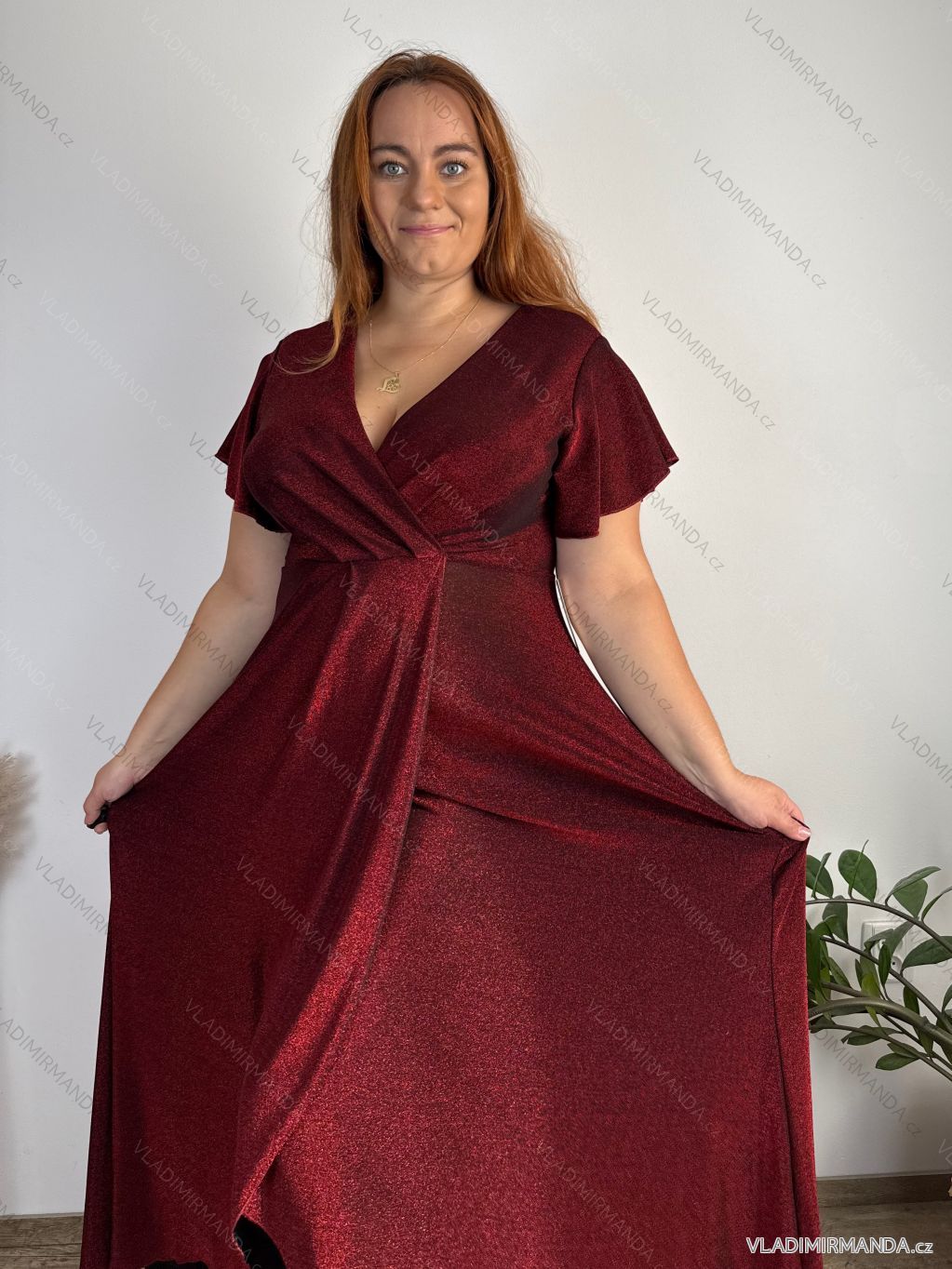 TOVAR (120639) > oblečenie dámske (81761) > šaty (30743) > Šaty dlhé maxi (8322) > Šaty dlhé maxi krátky rukáv (3105) > Šaty dlhé spoločenské trblietavé krátky rukáv dámske nadrozměr JITA (44/46/48 ONE SIZE) TALIANSKA MÓDA IM425653/DUR 44/46/48 červená