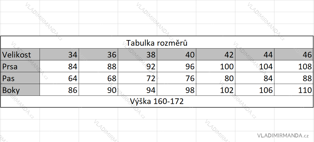 Šaty Vám necháme ušiť podľa uvedených veľkostí, termín ušitia je na dotaz na email: roudnice@vladimirmanda.cz