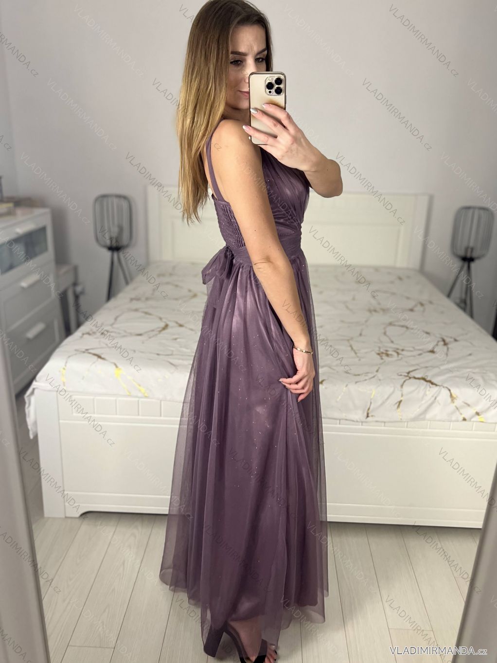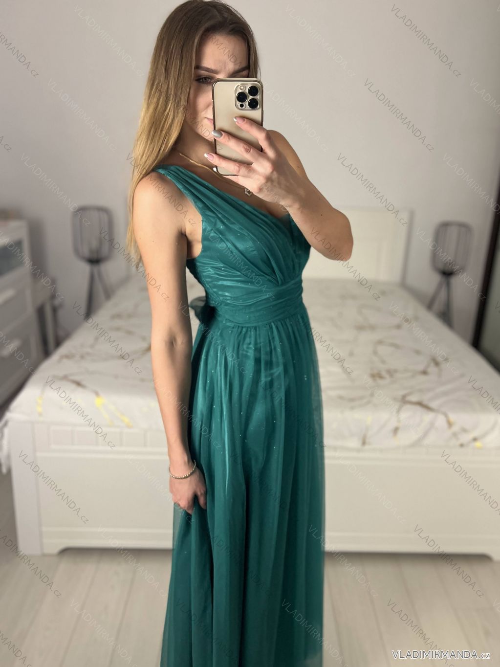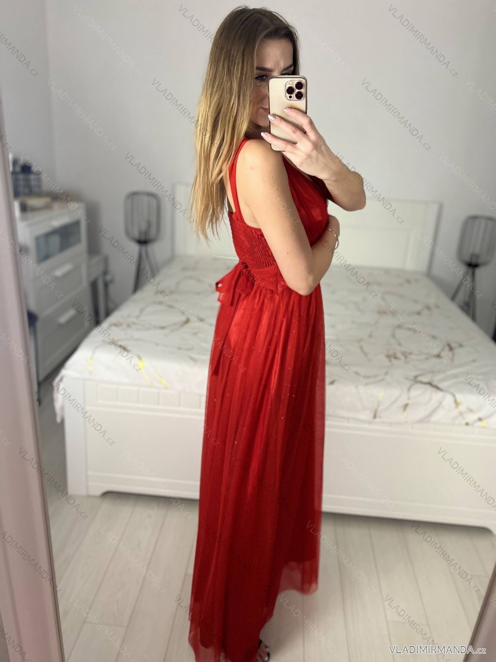 Šaty dlhé třpytivé spoločenské na ramienka dámske (S/M/L ONE SIZE) TALIANSKA MÓDA IMC23480/DUR čierna M / L