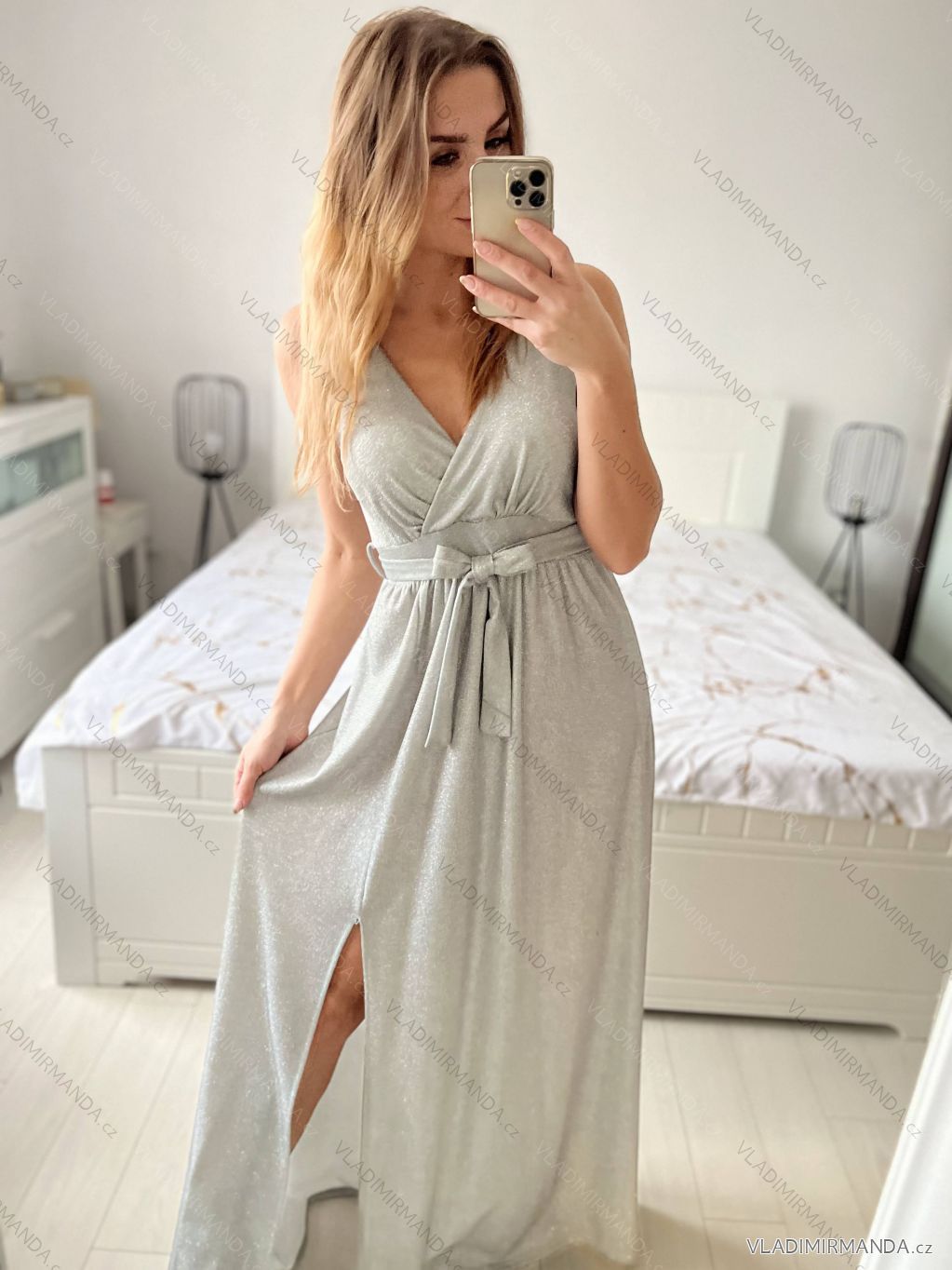 Šaty dlhé třpytivé spoločenské na ramienka dámske (S/M/L ONE SIZE) TALIANSKA MÓDA IMC23490