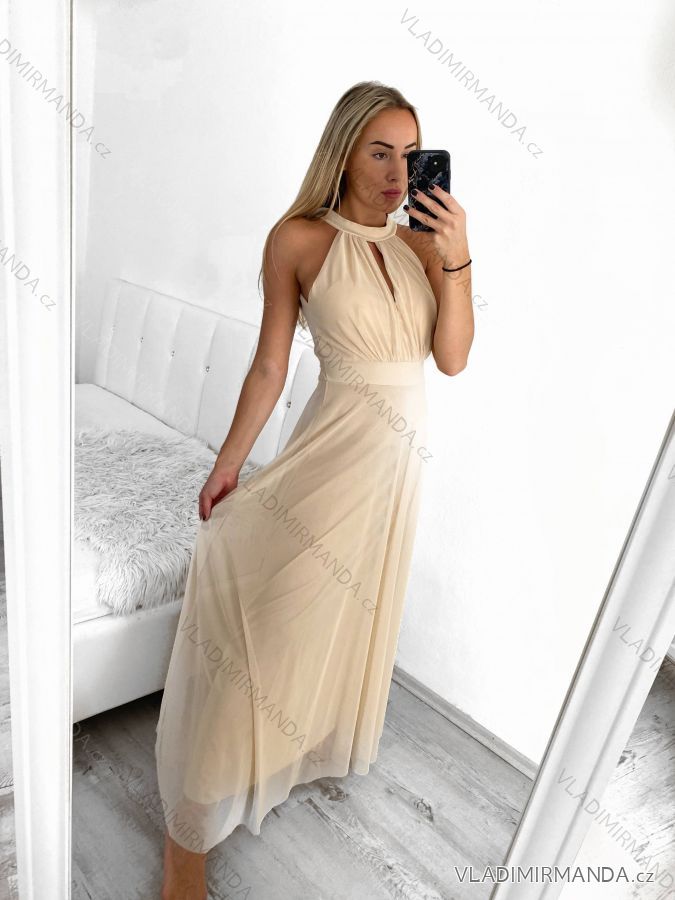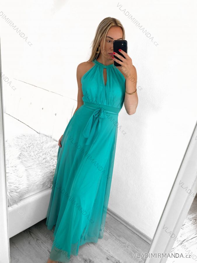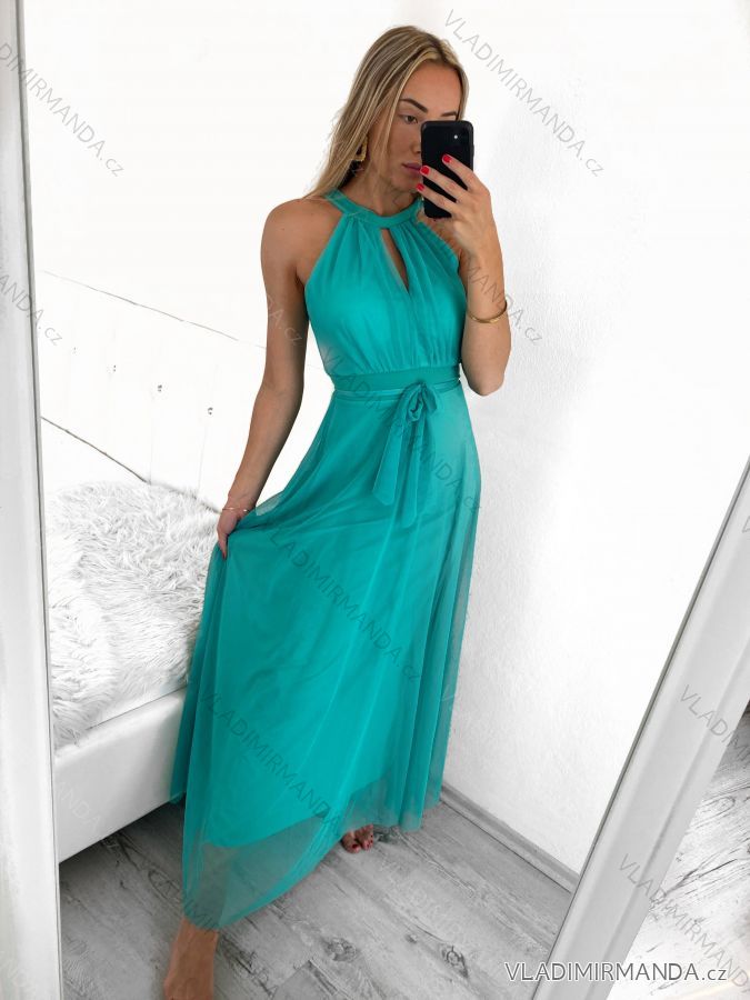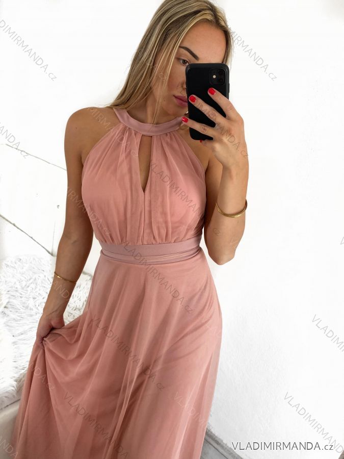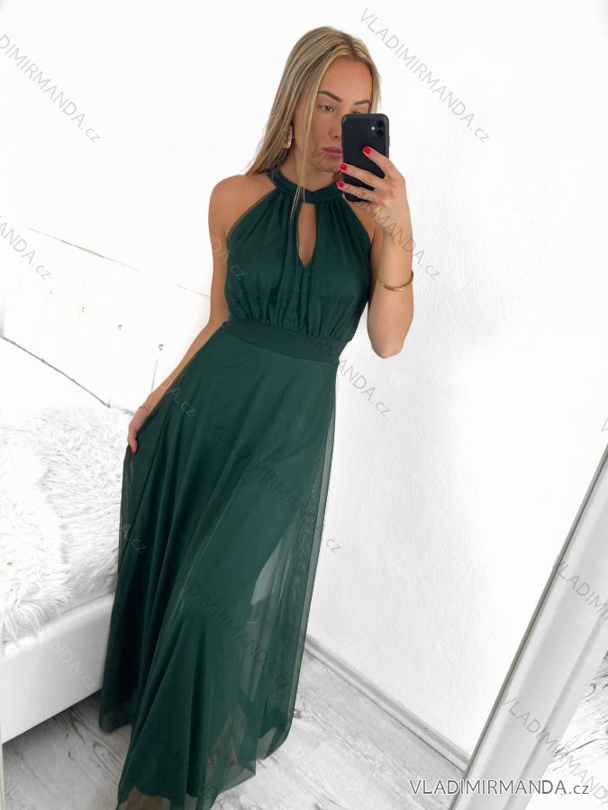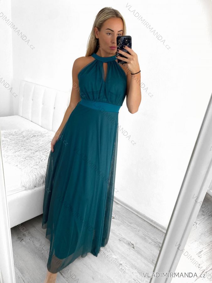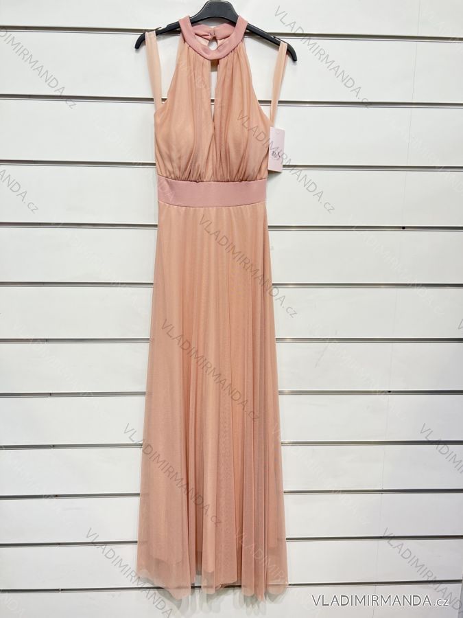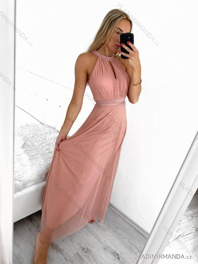 Šaty dlhé tylové spoločenské bez rukávu dámske (S/M ONE SIZE) TALIANSKA MÓDA IMM24M156