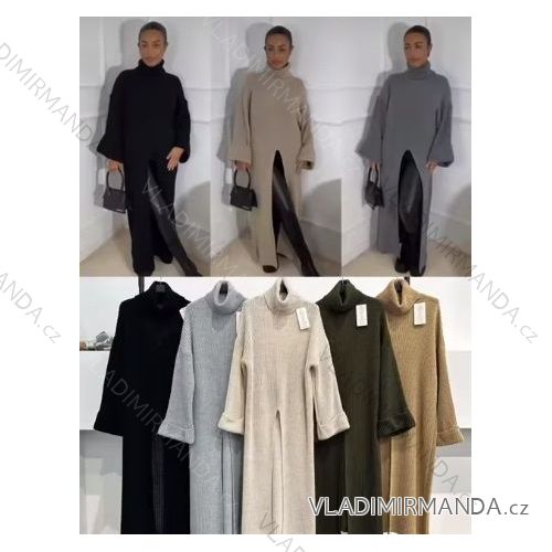 Šaty dlhé úpletové s rolákom dlhý rukáv dámska (S/M ONE SIZE) TALIANSKA MÓDA IMM23M3282