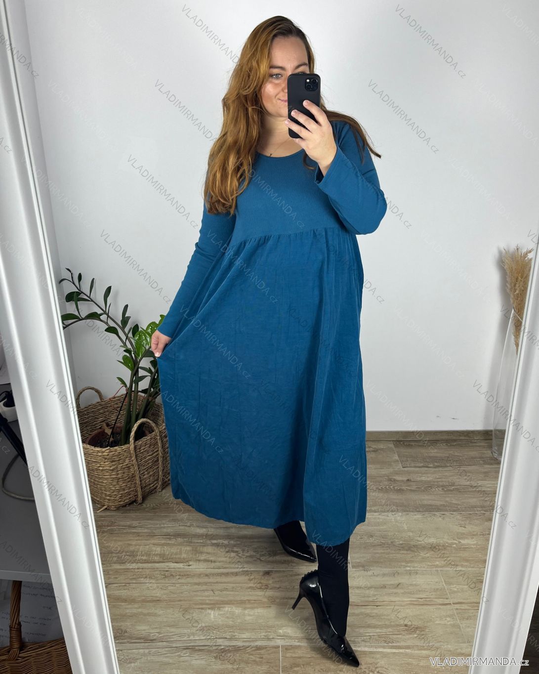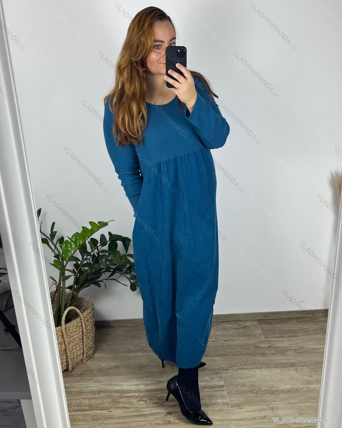 TOVAR (120691) > oblečenie dámske (81782) > šaty (30714) > Šaty dlhé maxi (8332) > Šaty dlhé maxi dlhý rukáv (979) > Šaty dlhé voľnočasové dlhý rukáv dámske nadrozmer (46/48/50 ONE SIZE) TALIANSKA MÓDA IMSM2424575/DUR modrá 48/50
