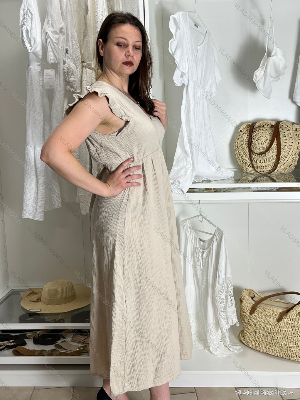 TOVAR (120624) > oblečenie dámske (81985) > šaty (31002) > Šaty dlhé maxi (8195) > Šaty dlhé maxi krátky rukáv (3157) > Šaty dlhé voľnočasové letný mušelín krátky rukáv dámske INGE (S/M/L ONE SIZE) TALIANSKA MÓDA IM425304/DUR S/M/L béžová