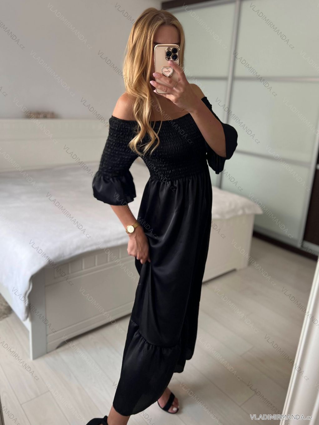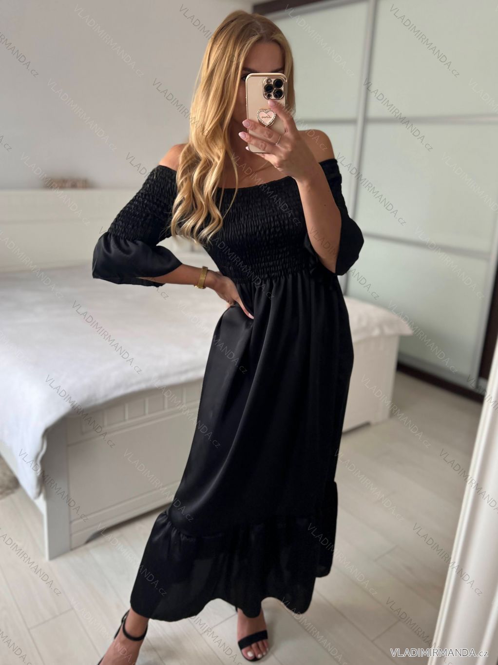 TOVAR (120669) > oblečenie dámske (81782) > šaty (30714) > Šaty dlhé žabičované krátky rukáv dámske (S/M ONE SIZE) TALIANSKA MÓDA IMPMD243151k