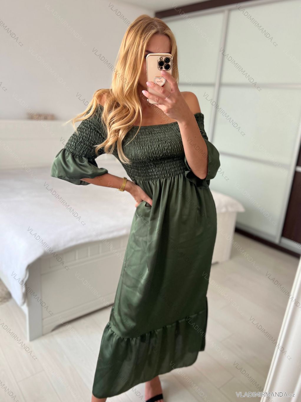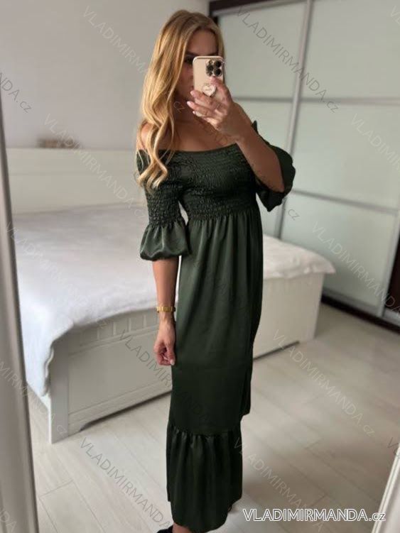 TOVAR (120887) > oblečenie dámske (81955) > šaty (30768) > Šaty dlhé žabičované krátky rukáv dámske (S/M ONE SIZE) TALIANSKA MÓDA IMPMD243151K/DU - tmavo zelená - S / M