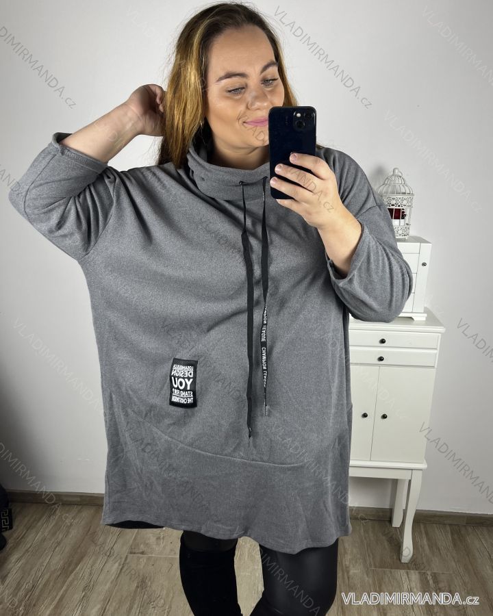 Šaty dlhý rukáv dámske nadrozmer (4XL/5XL ONE SIZE) TALIANSKA MÓDA IM423MAGRA