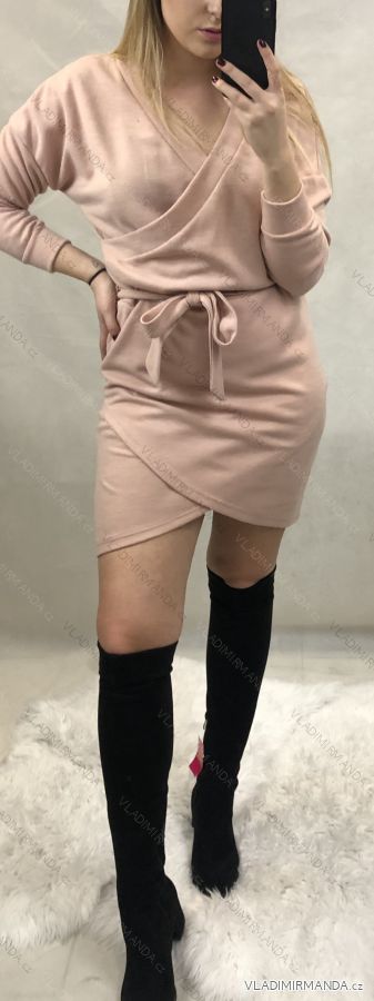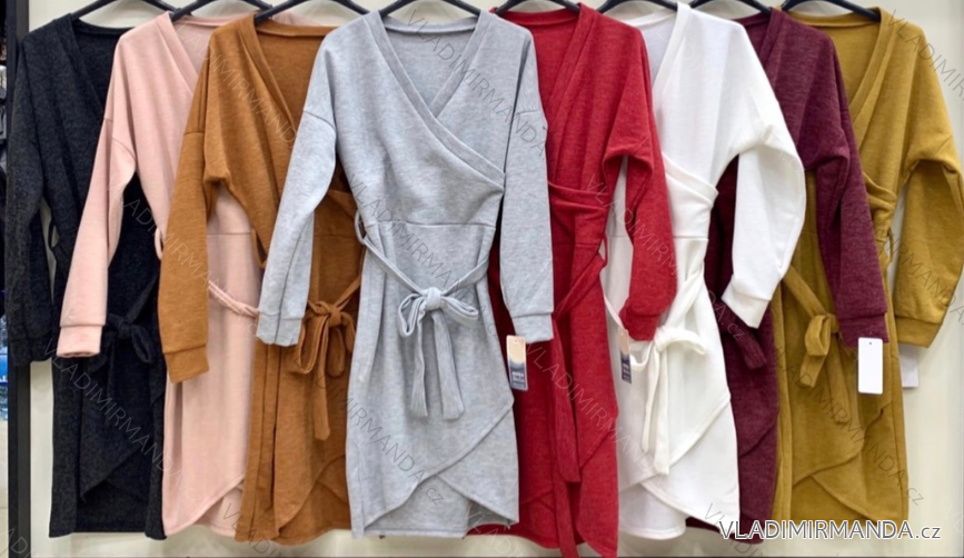 Šaty dlouhý rukáv dámské S MAŠLÍ (s/m - M/l) Italská móda LEU190910y08 _UNI S / M šedá tmavá