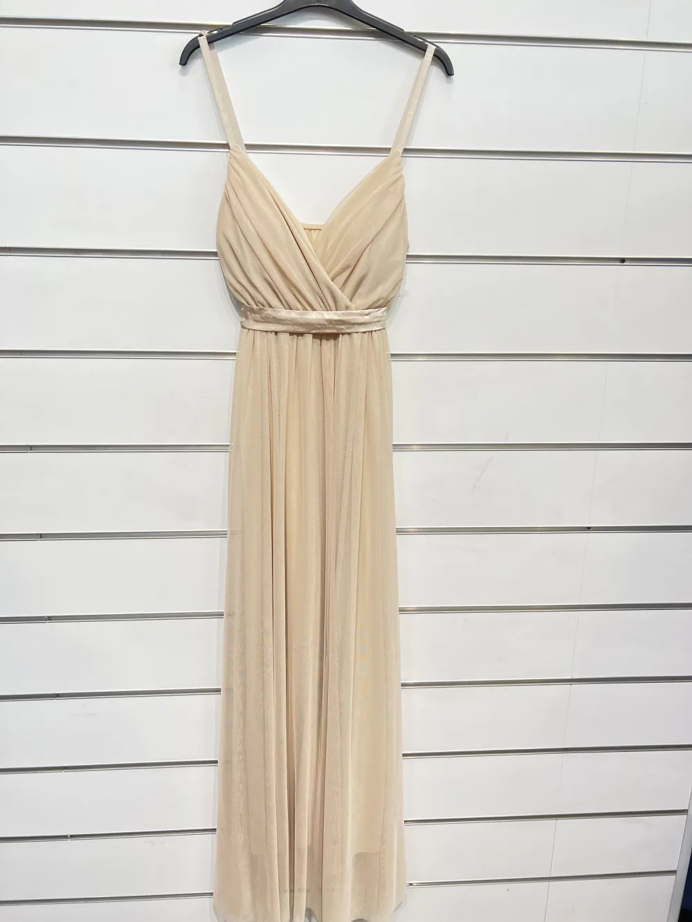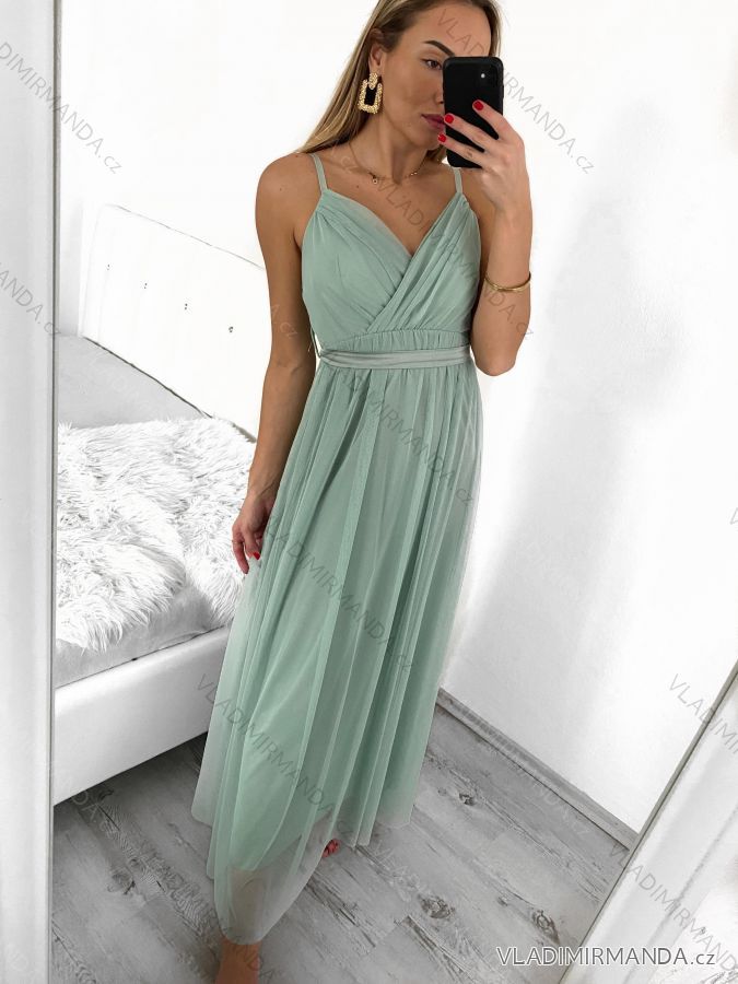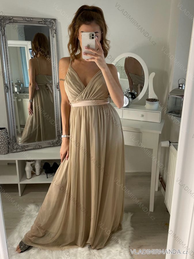 TOVAR (120861) > oblečenie dámske (81928) > šaty (30764) > Šaty dlhé elegantné spoločenské na ramienka dámske (S/M ONE SIZE) TALIANSKA MÓDA IMPSH243670 béžová S/M