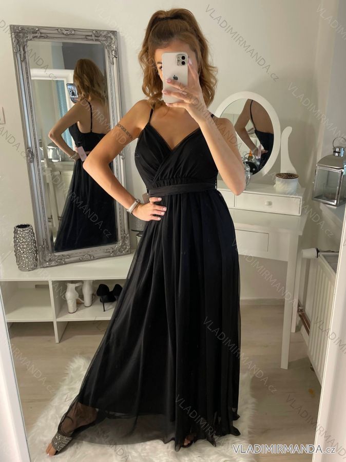 Elegantní šaty dlouhé letní na ramínka dámské, vhodné na společenské akce, plesy, večeře, maturity, svatby, prsa s vycpávkou, saténová mašle v pase, nastavitelná ramínka. šaty jsou velmi pružné a ideální pro družičky od XS až po L