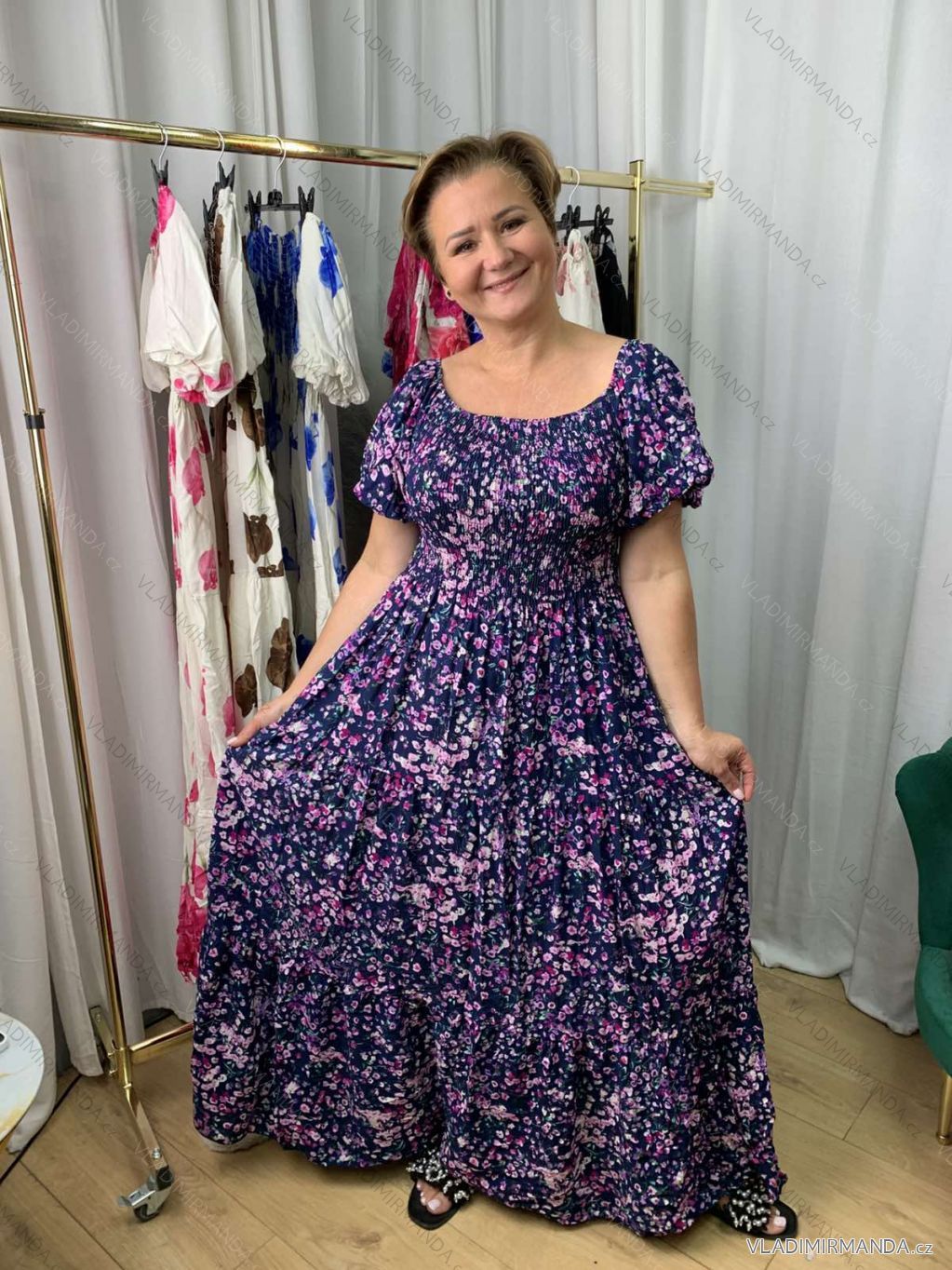 Šaty dlouhé krátký rukáv dámské viskoza nadrozměr (42/44/46 ONE SIZE) ITALSKÁ MÓDA IMWEC25049