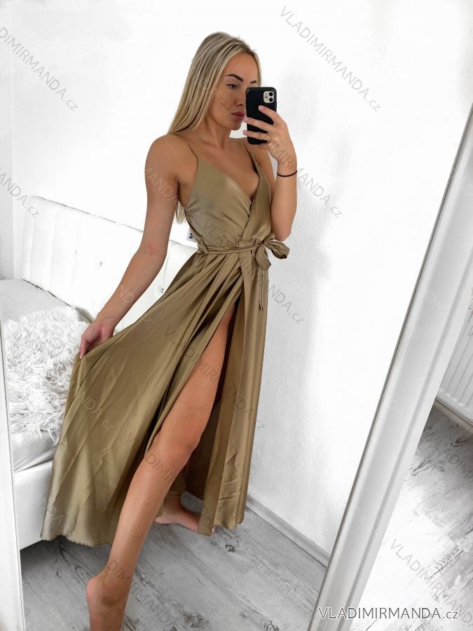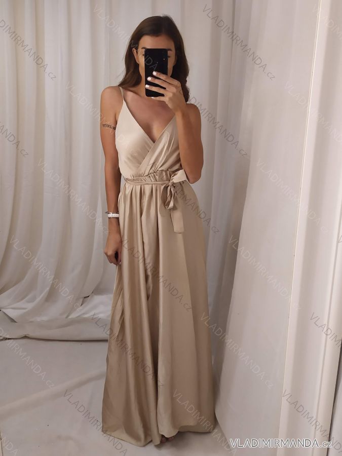 TOVAR (120639) > oblečenie dámske (81761) > šaty (30742) > Šaty dlouhé letní saténové s páskem na ramínka dámské (S/M/L/XL ONE SIZE) ITALSKÁ MÓDA IMM22INFINITE