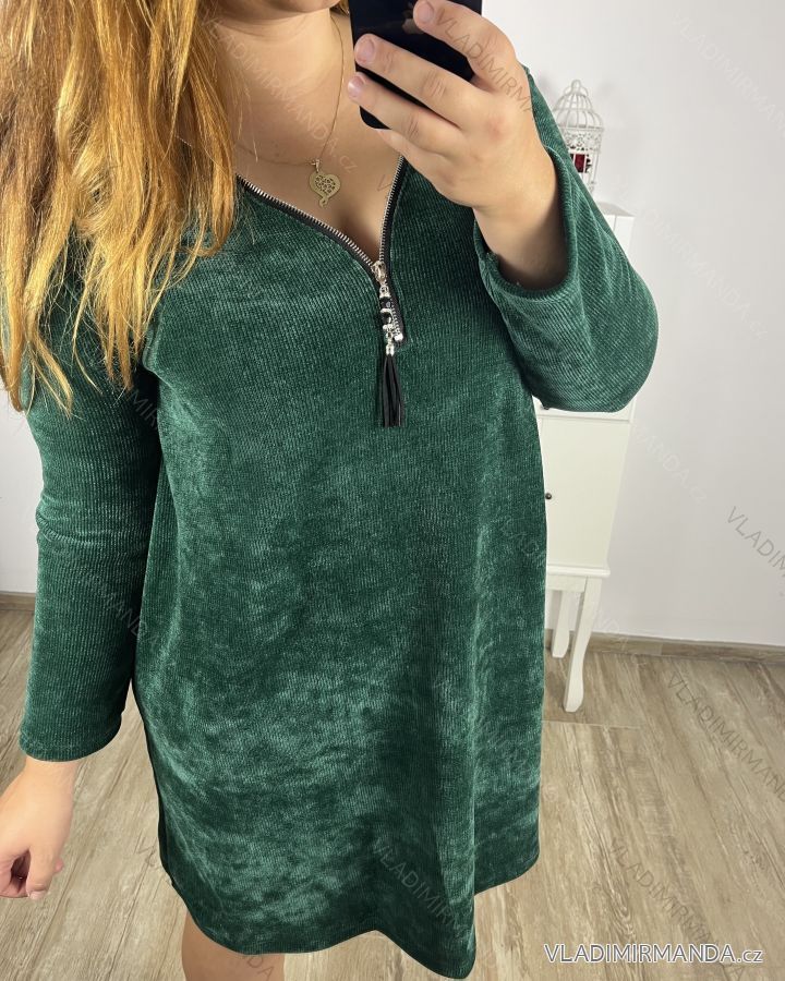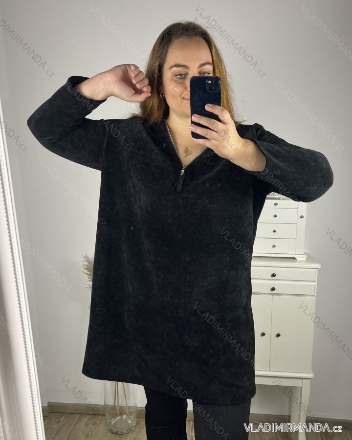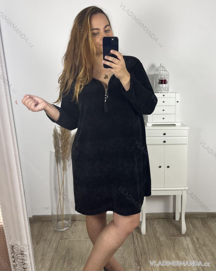 Šaty dlouhý rukáv dámske nadrozmer (3XL/4XL/5XL ONE SIZE) TALIANSKA MÓDA IM423KATA/DU 4XL / 5XL čierna