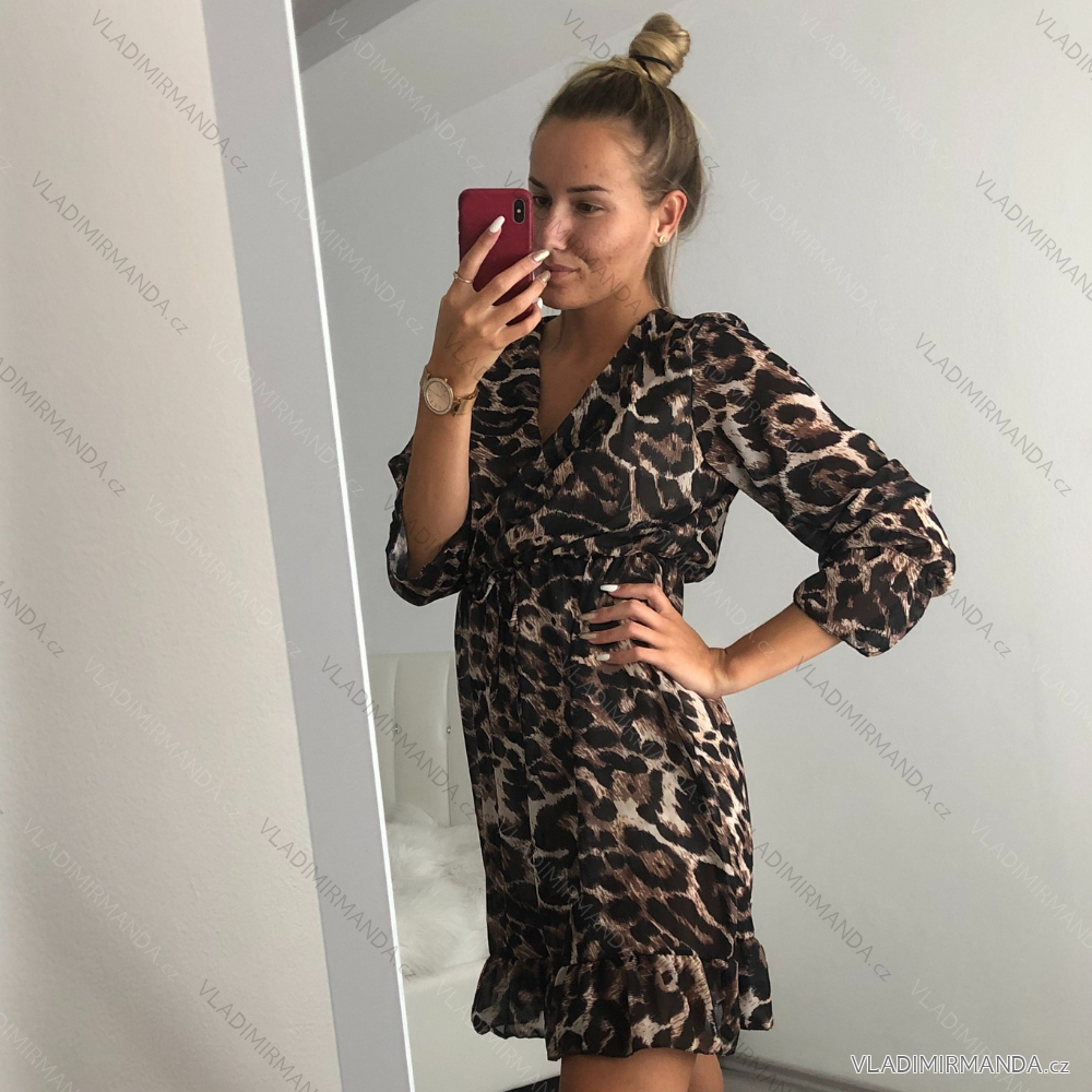 Šaty elegantné leopard dlhý rukáv dámske (S/M one size) TALIANSKÁ MÓDA IMWA21JANOV/DR S / M leopardí