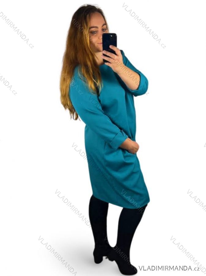 Šaty elegantní pouzdrové dlhý rukáv dámske (44,46,48,50,52) POLSKÁ MÓDA PMWHB23004 tmavo mintová 52