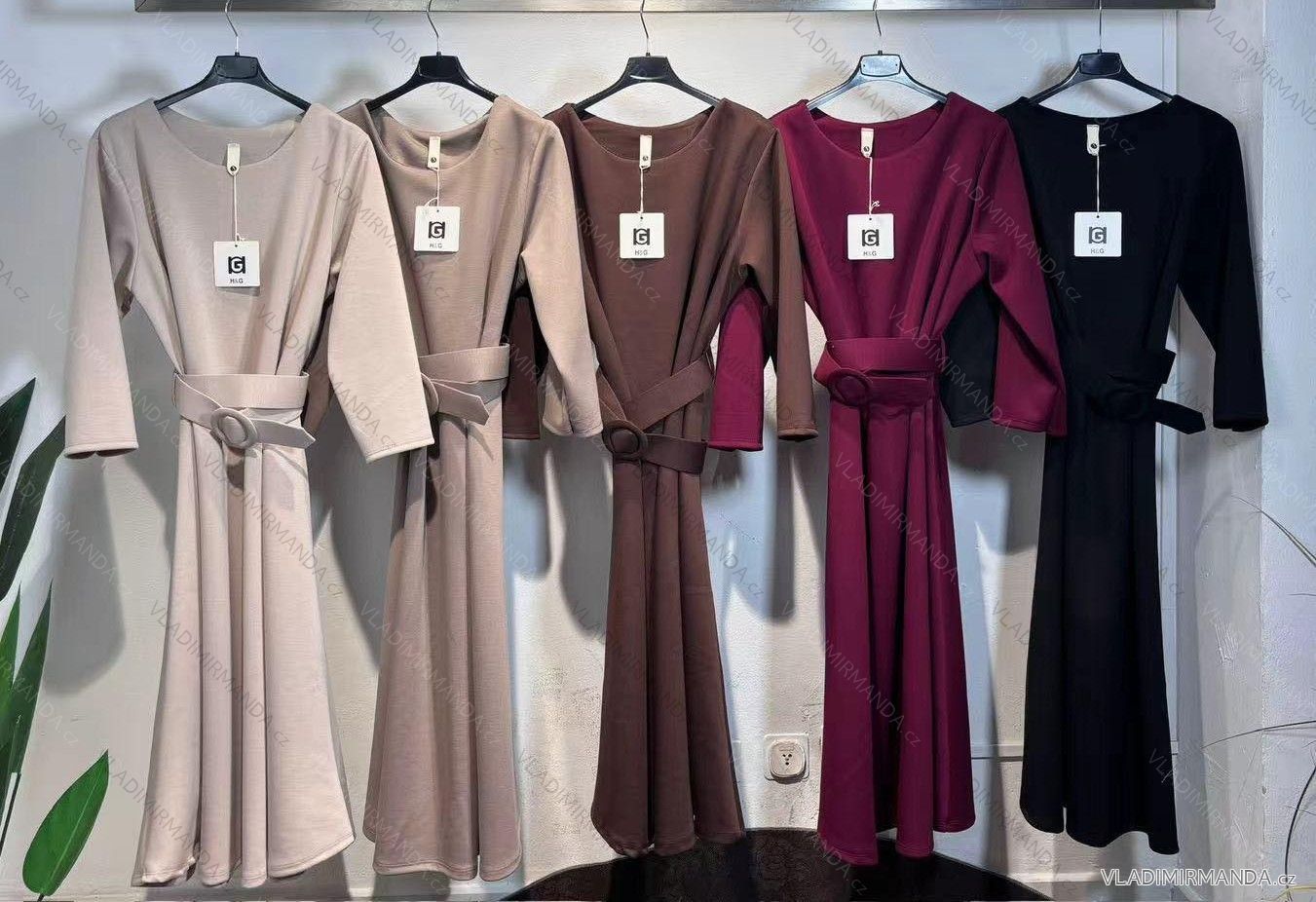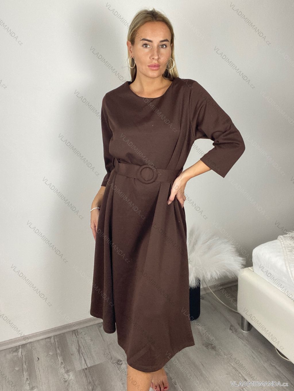 Šaty elegantné s opaskom dlhý rukáv dámske JANE (S/M/L ONE SIZE) TALIANSKA MÓDA IMM25M8066