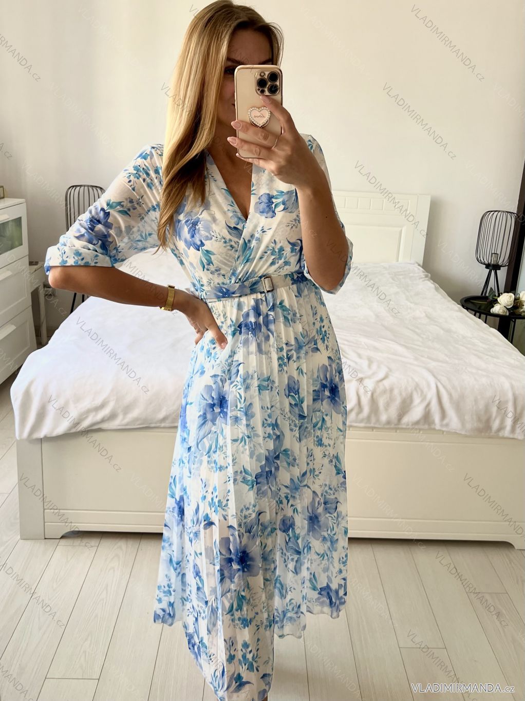 Rozměry: přes prsa 98cm, pas na gumu 60-90cm, délka 123cm