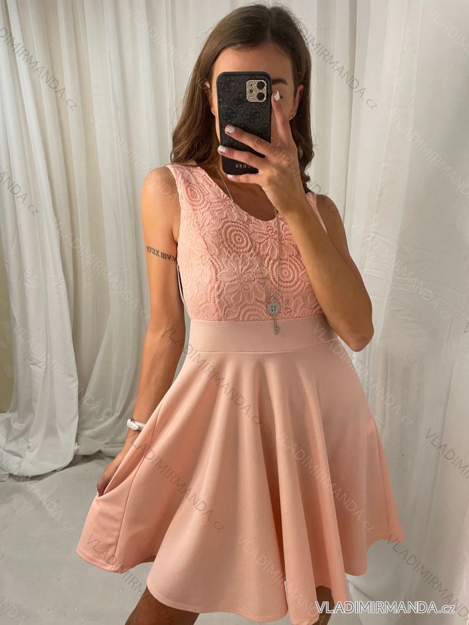 Šaty elegantní krátké bez rukávu dámské, s krajkou na prsou, vzadu zapínaní na knoflík, prsa s vycpávky,