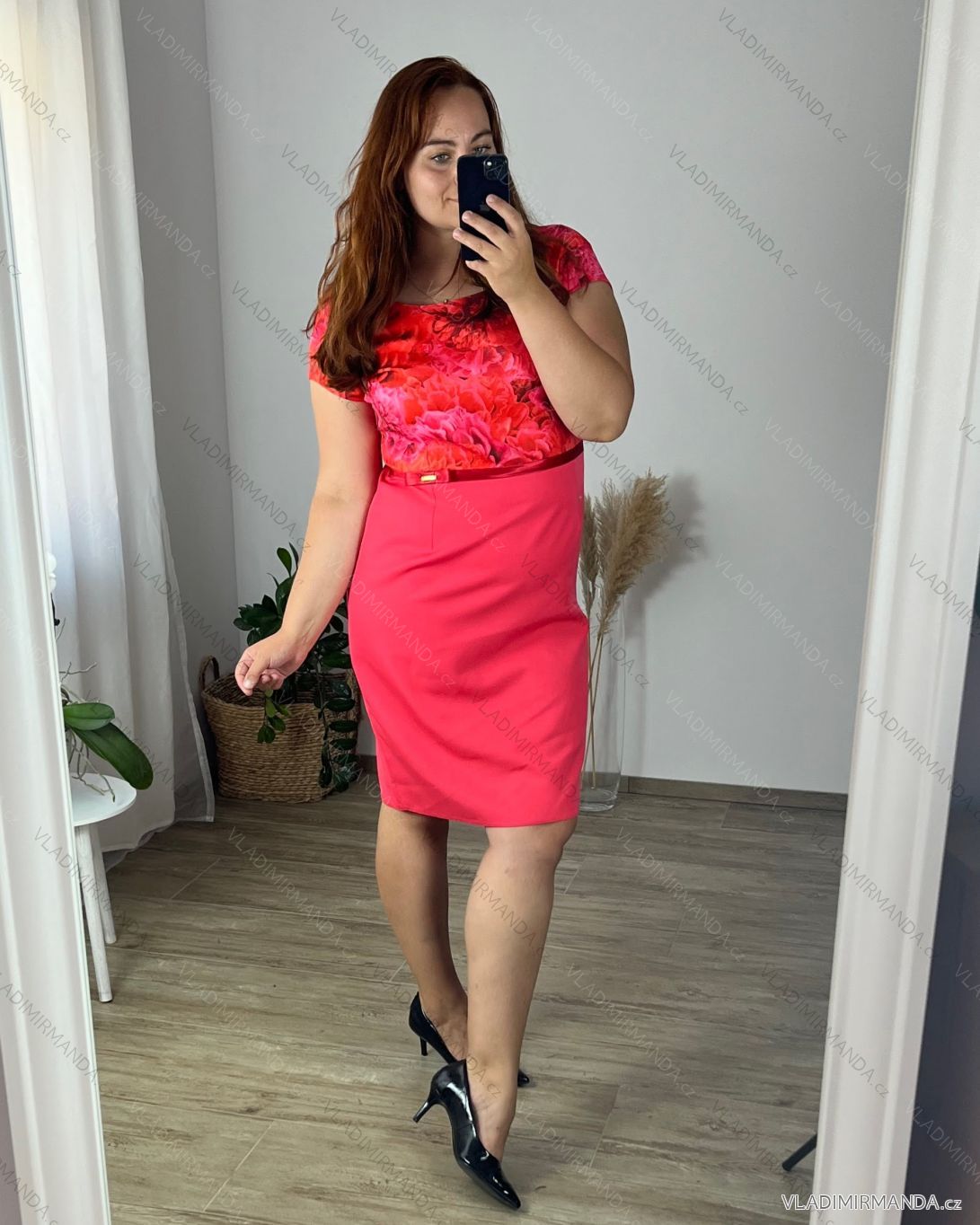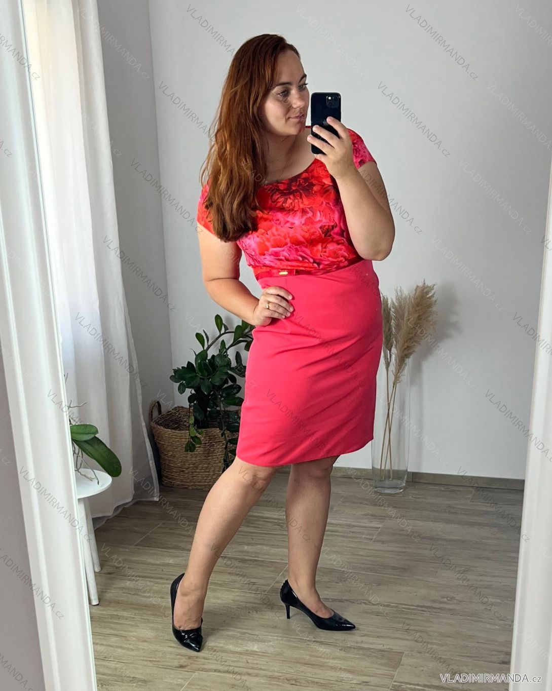TOVAR (120798) > oblečenie dámske (81884) > šaty (30743) > Šaty spoločenské (5031) > Šaty plesové krátke (1332) > Šaty elegantné spoločenské bez rukávov dámske nadrozmer (42-52) POLSKÁ MÓDA PMF23ROSE-1/DR 50 ružová