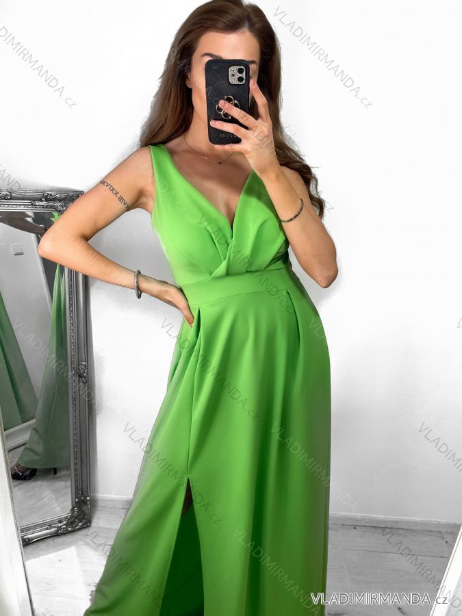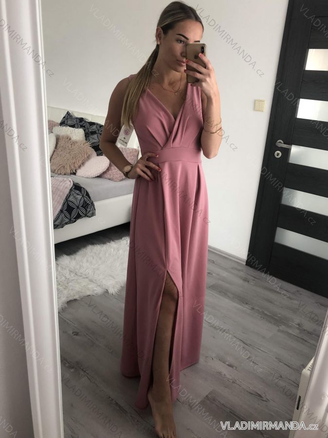 Šaty elegantné spoločenské dlhé na ramienka dámske (XS/S/M/L ONE SIZE) TALIANSKA MÓDA IM322045/DUR M/L červená