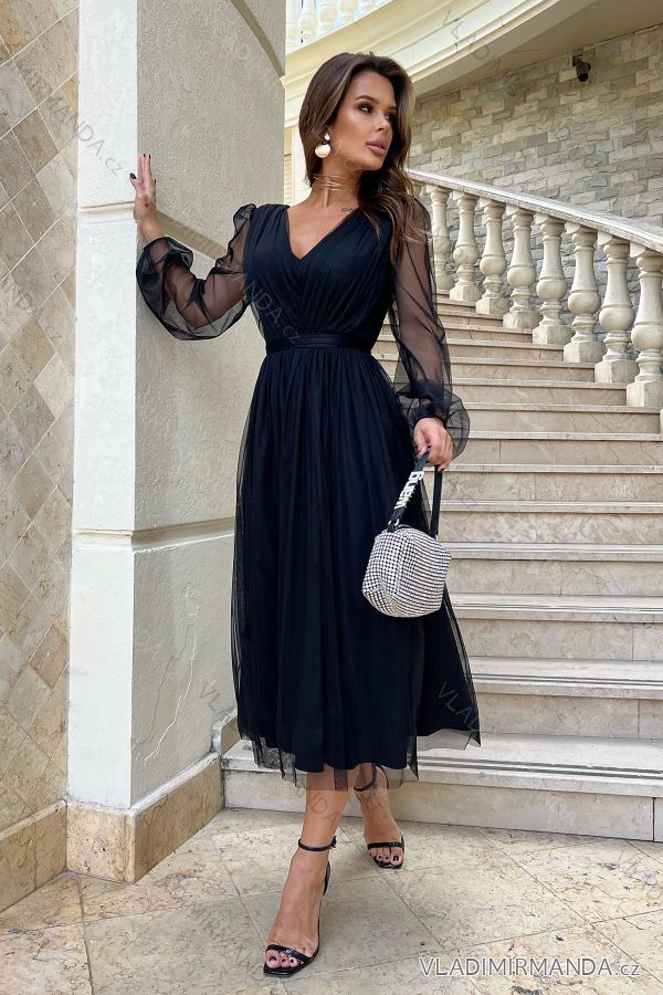 Šaty elegantní společenské dlouhý rukáv dámské (34-44) POLSKÁ MÓDA PMLBC23269-06 čierna 34
