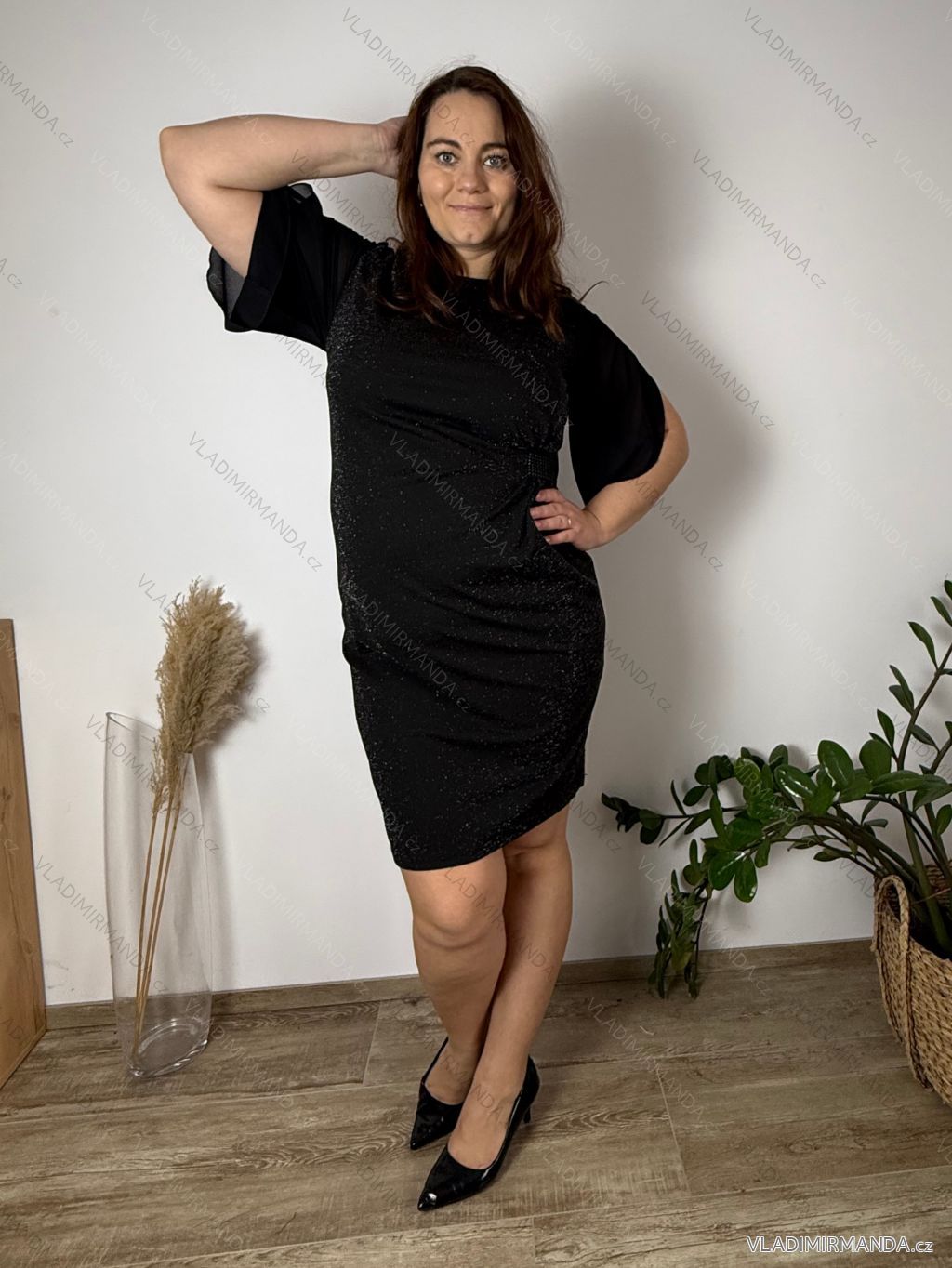 TOVAR (120518) > oblečenie dámske (81625) > šaty (30658) > Šaty spoločenské (5018) > Šaty plesové krátke (1329) > Šaty elegantné spoločenské krátký rukáv dámske nadrozmer (42-50) POLSKÁ MÓDA PMF25002-1/DU 42 čierna