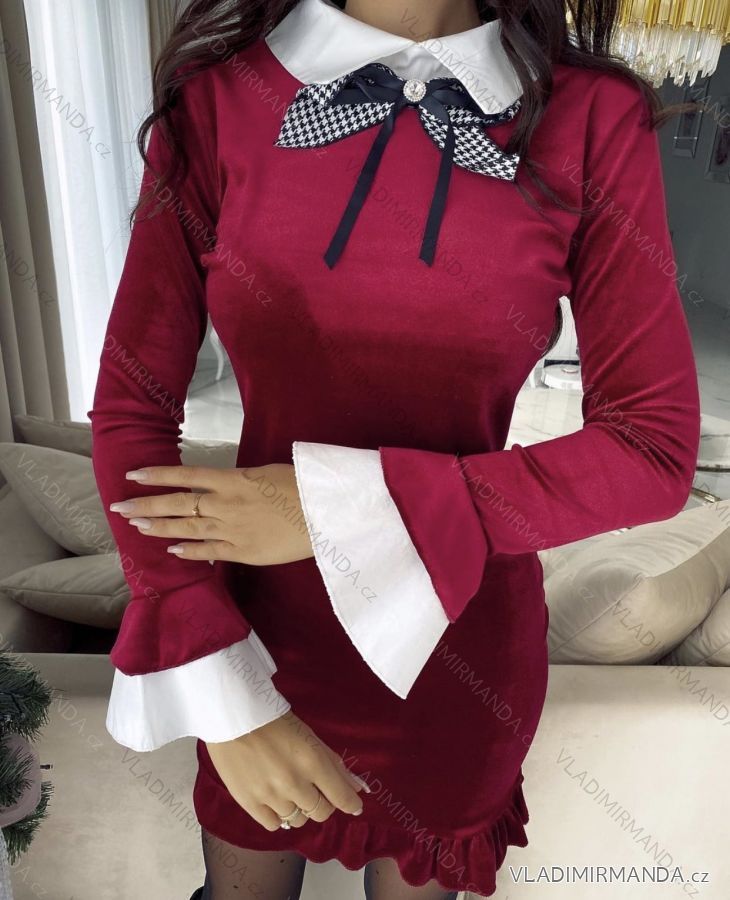 Šaty elegantné zamatovej dlhý rukáv dámske (S / M ONE SIZE) TALIANSKÁ MÓDA IMWD201184