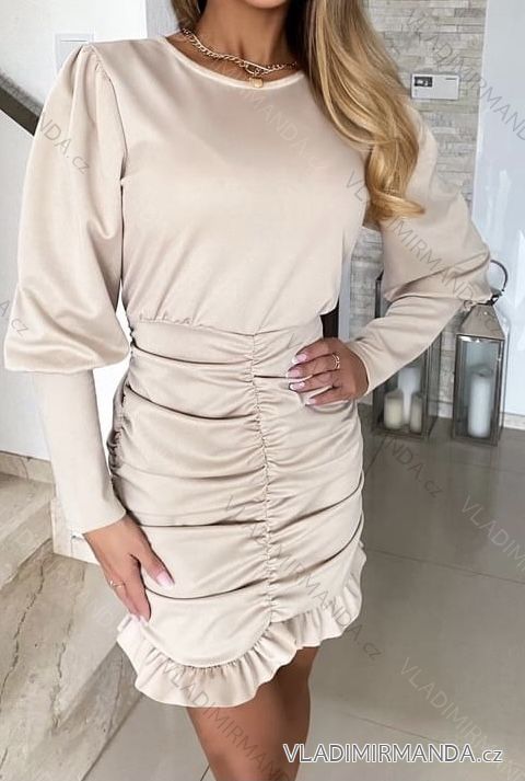 Šaty elegantní dlouhý rukáv dámská (S/M ONE SIZE) ITALSKÁ MÓDA IMWM218605