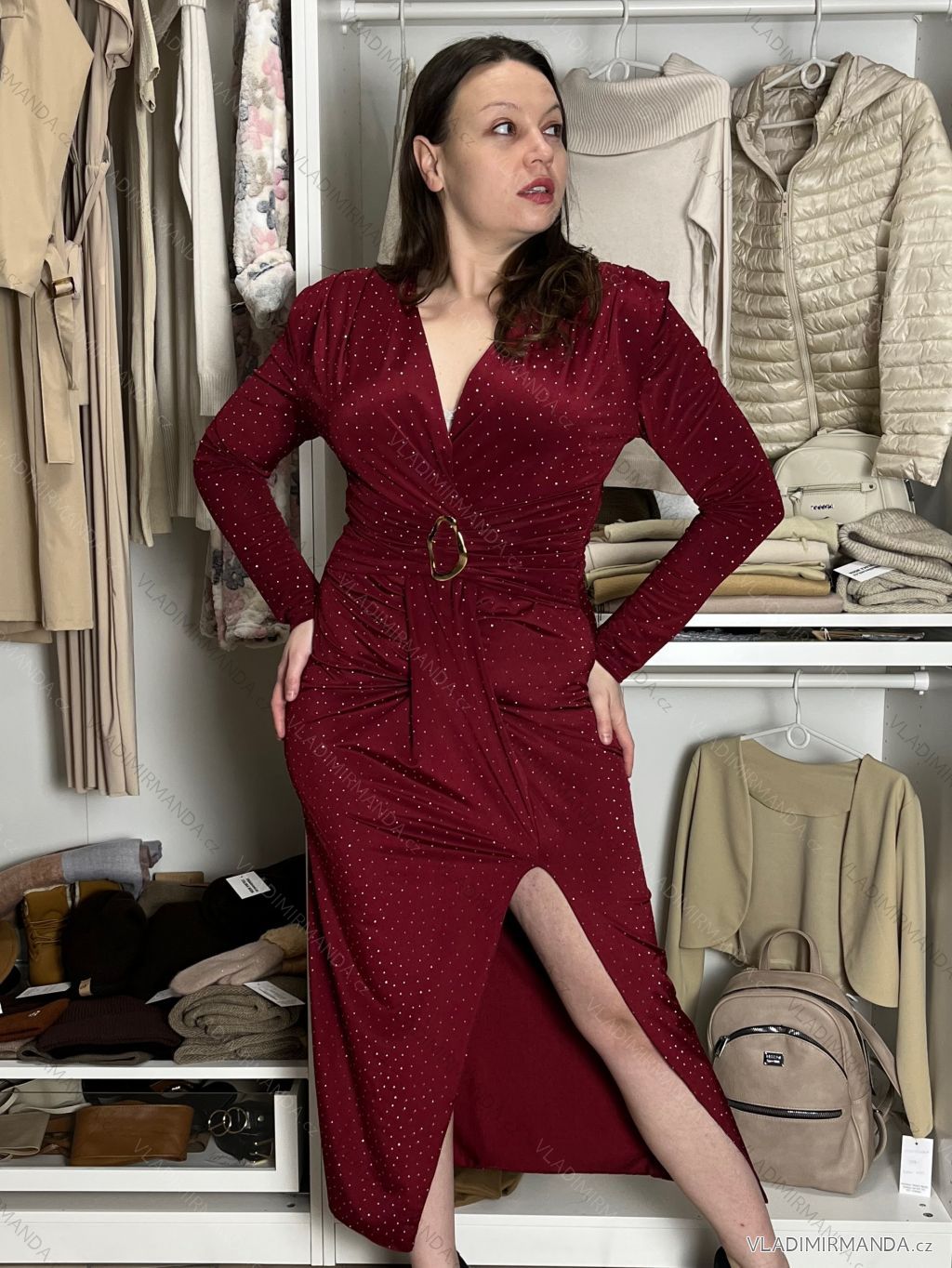 Šaty elegantní dlouhý rukáv dámsky (S/M/L ONE SIZE) talianska móda IMWMY251116/DU S/M/L vínová