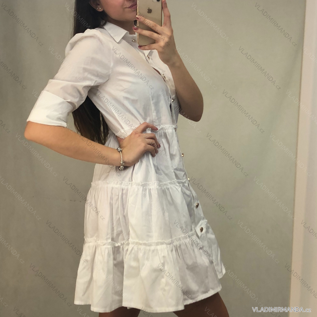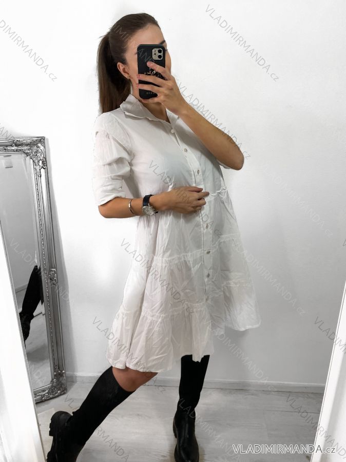 TOVAR (119099) > oblečenie dámske (80537) > šaty (30243) > Šaty elegantní košilové bavlněné dlouhý rukáv dámské (S/M ONE SIZE) ITALSKÁ MÓDA IMWG215562