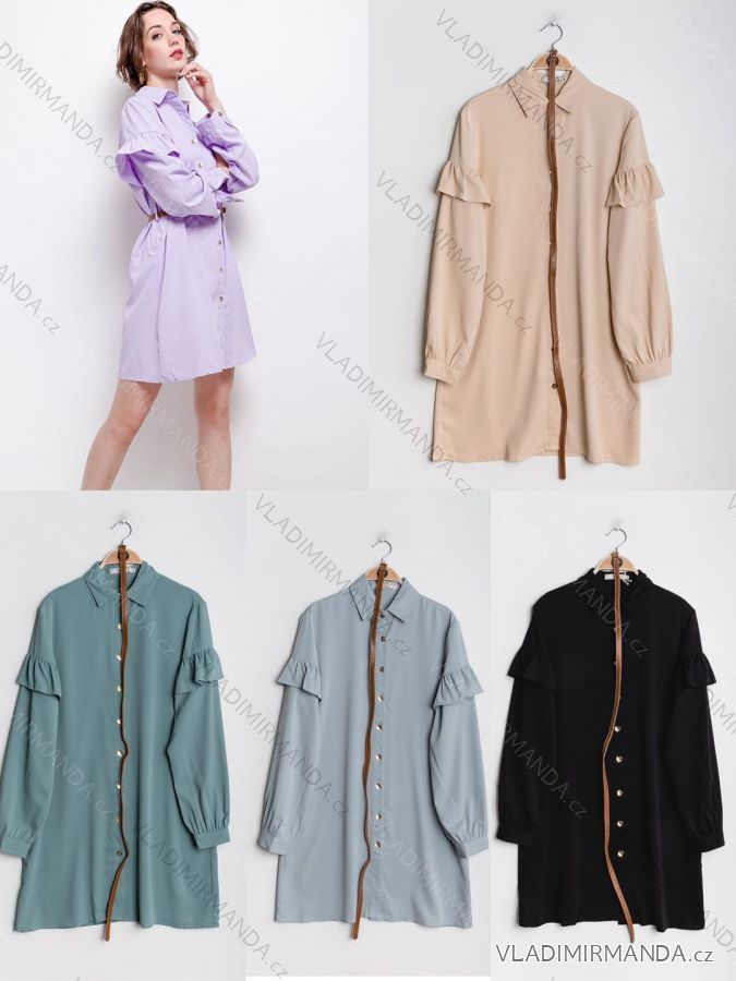 TOVAR (120808) > oblečenie dámske (81890) > šaty (30753) > Šaty elegantní košilové dlouhý rukáv s páskem dámské (UNI S/L) ITALSKÁ MÓDA IMK20539