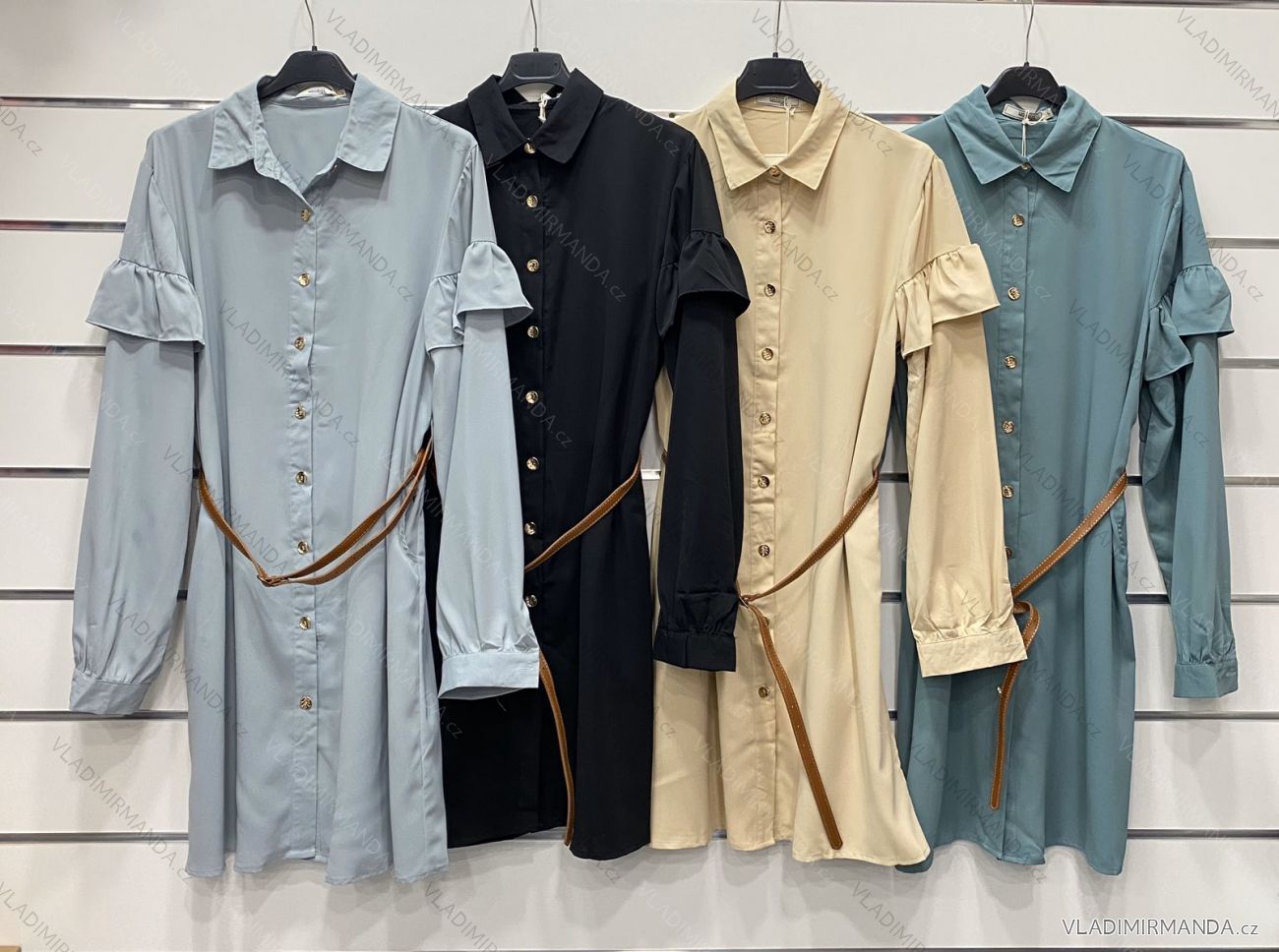 Šaty elegantní košilové dlouhý rukáv s páskem dámské (UNI S/L) ITALSKÁ MÓDA IMK20539