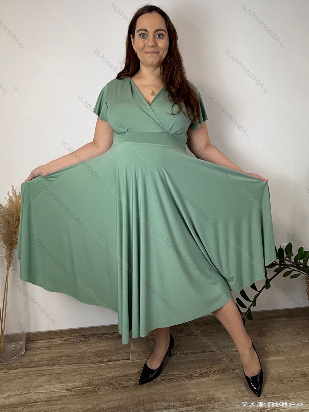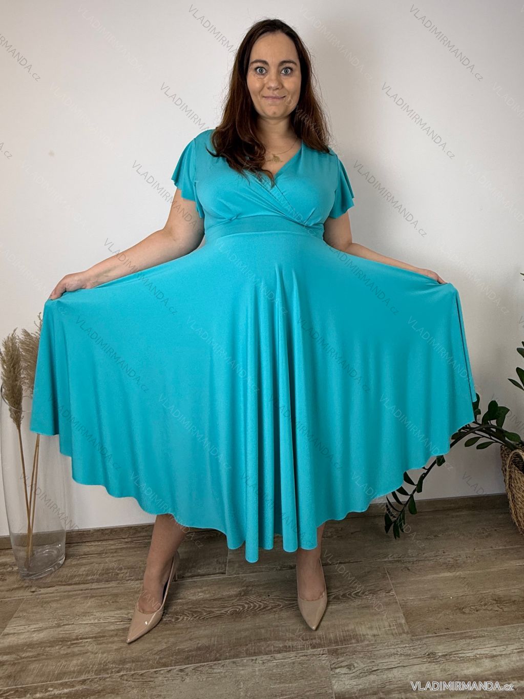 Šaty letné elegantní s krátkým rukávem dámske nadrozmer TASA (44/46/48 ONE SIZE) TALIANSKA MÓDA IM4260028/DUR 44/46/48 modrá azúrová