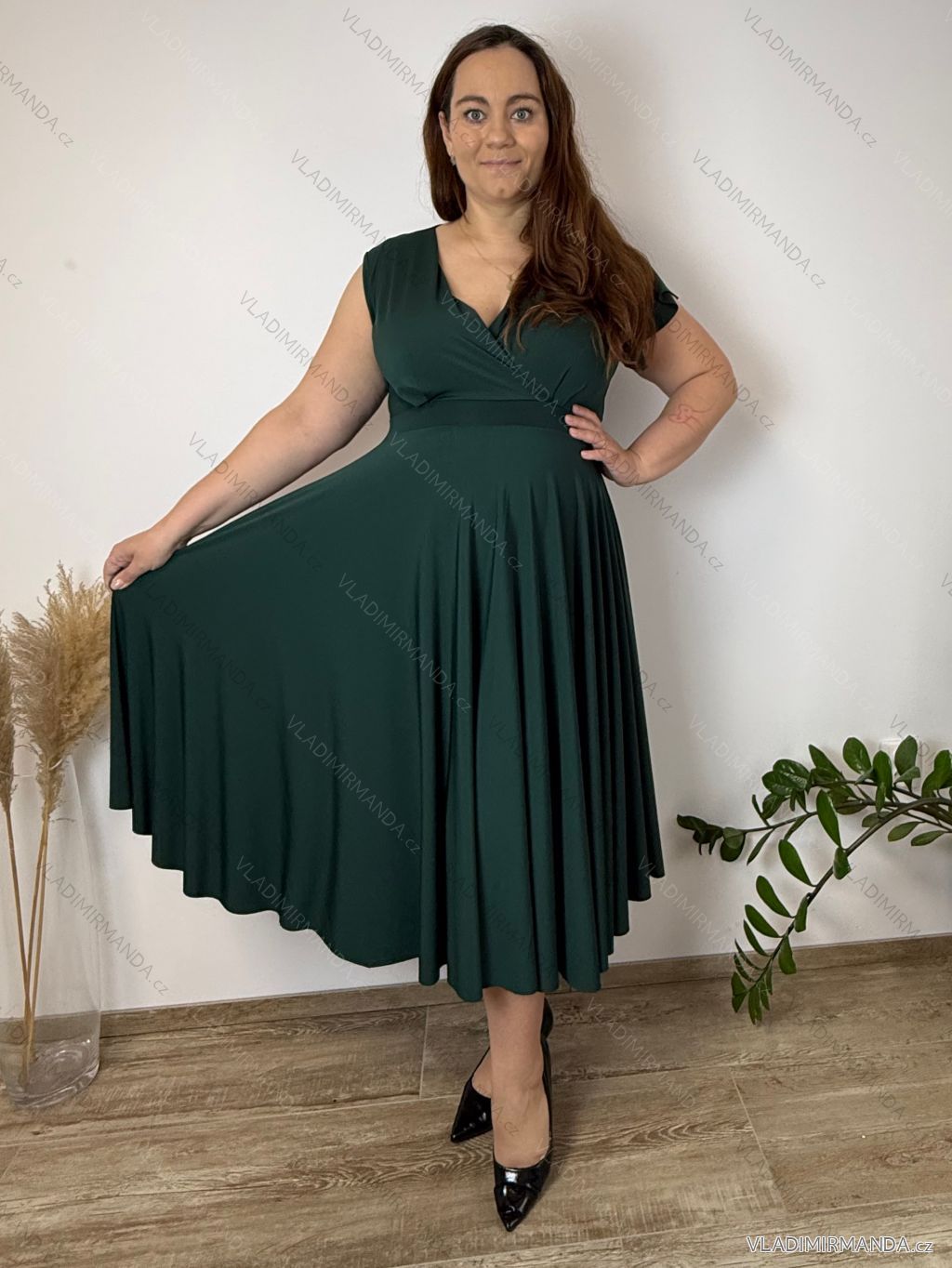 Modelka Veronika na fotografiách má výšku 170 cm a miery 114-122 (prsia-boky)