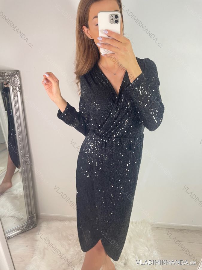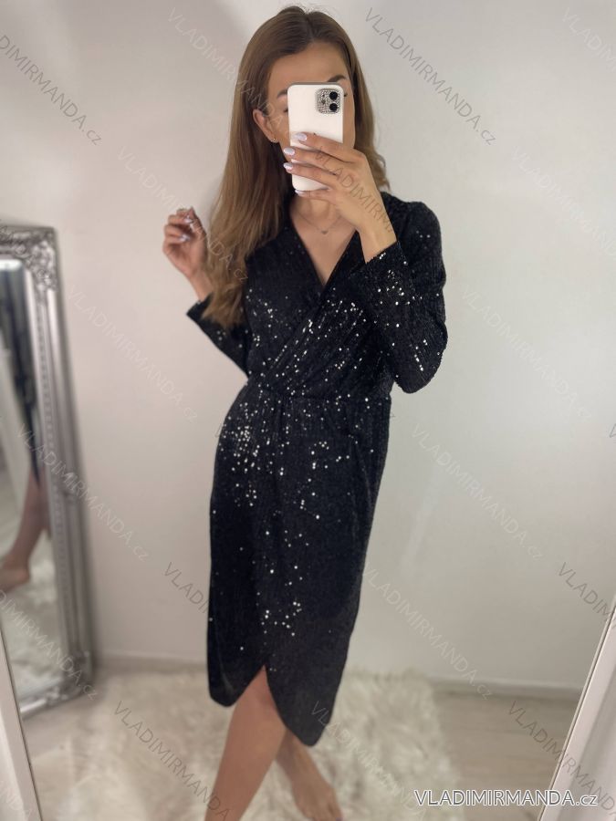Šaty elegantní třpytivé flitrové dlouhý rukáv dámské (S/M/L ONE SIZE) ITALSKÁ MÓDA IMWGS223661