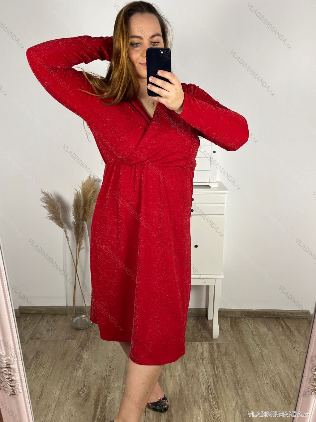 Šaty elegantný dlhý rukáv dámske (S-3XL) POLSKÁ MÓDA PMWH234411/DU červená S