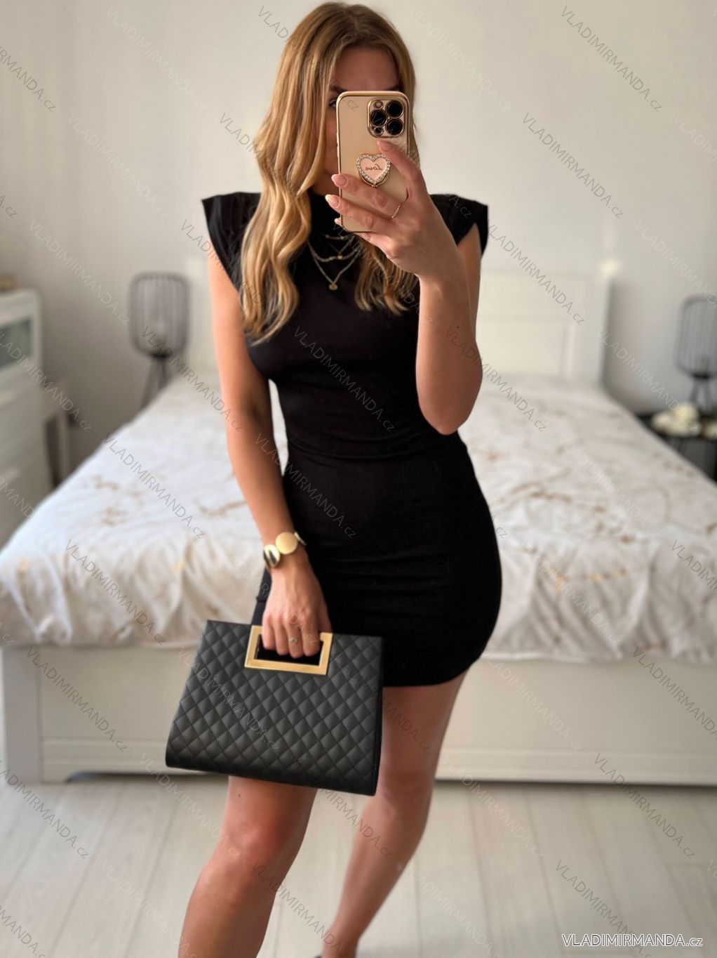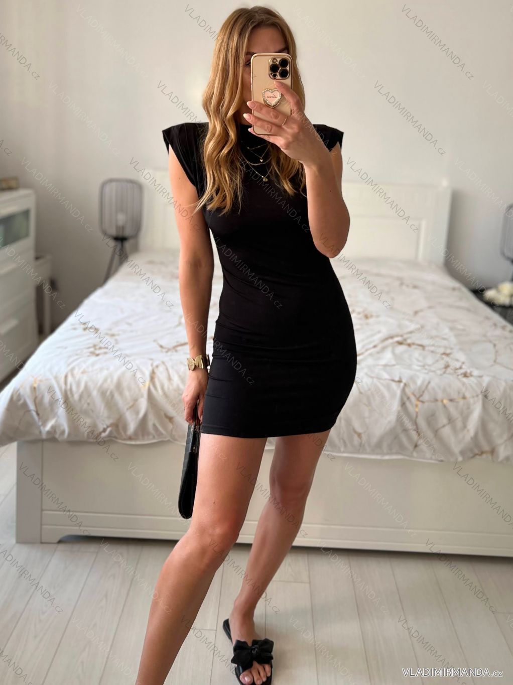 TOVAR (120750) > oblečenie dámske (81833) > šaty (30729) > Šaty elegantný krátky rukáv dámske (S/M ONE SIZE) TALIANSKA MÓDA IMPGM24LOVE/DU S / M čierna