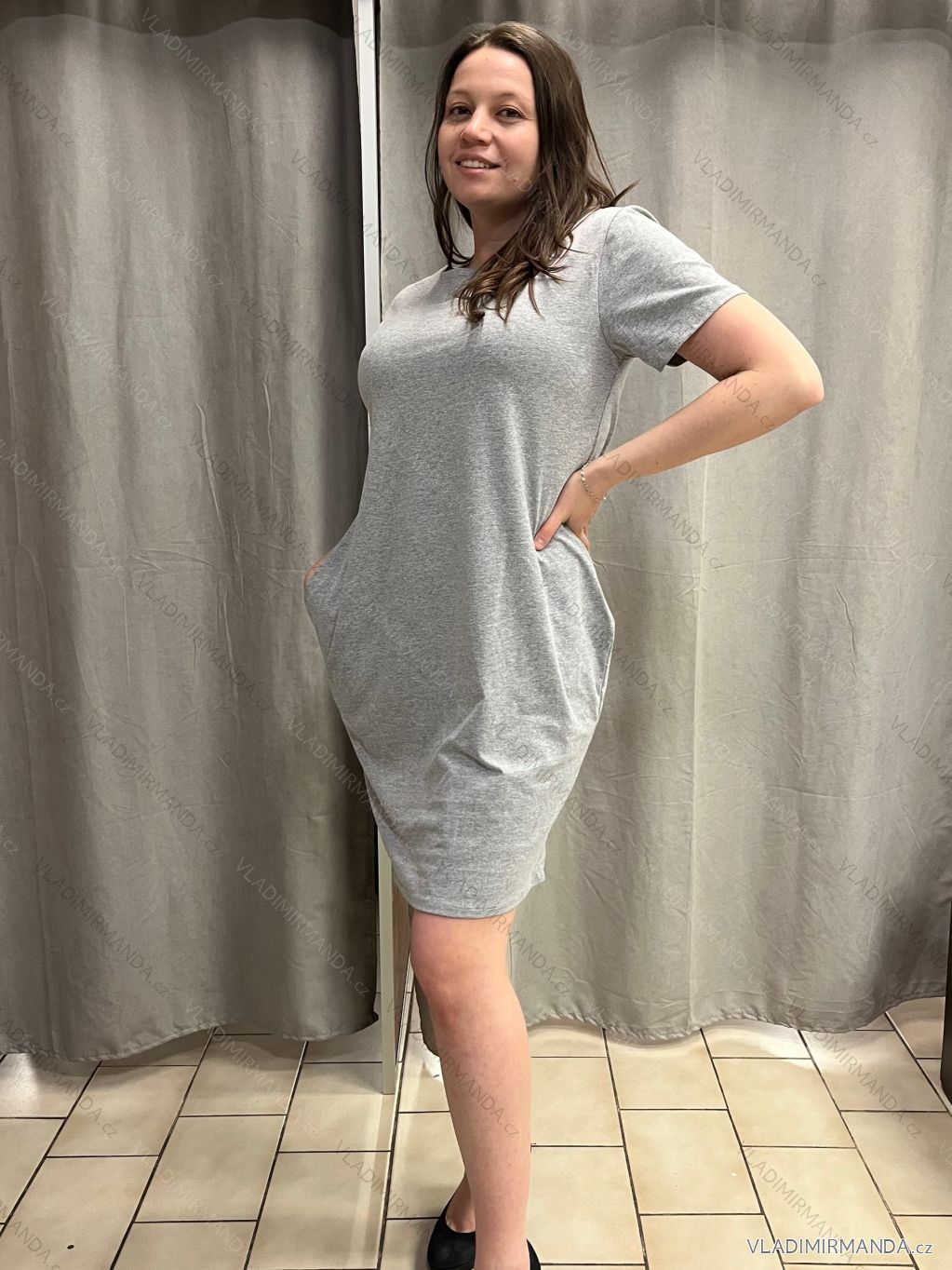 Šaty klasik krátky rukáv s vreckami dámske nadrozměr (L/XL / XXL ONE SIZE) TALIANSKÁ MÓDA IMD21049