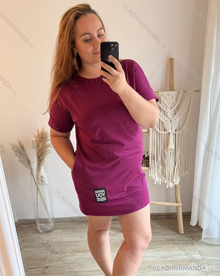 Šaty klasik s nášivkou krátky rukáv dámske (XL/2XL/3XL ONE SIZE) TALIANSKA MÓDA IMD23378
