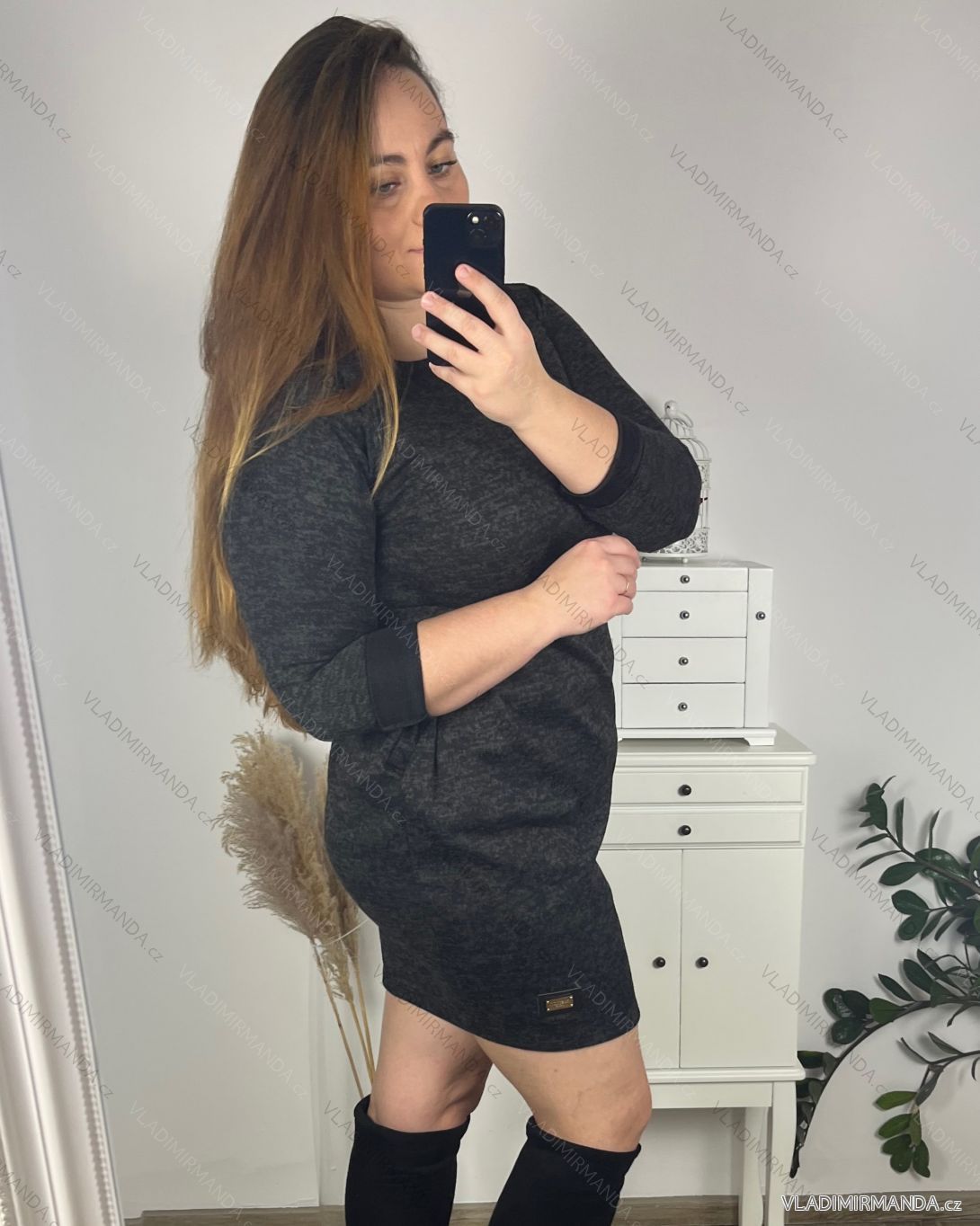 TOVAR (119419) > oblečenie dámske (80848) > šaty (30317) > Šaty klasik teplé dlouhý rukáv dámské (L/XL ONE SIZE) ITALSKÁ MÓDA IMD23791 béžová L/XL