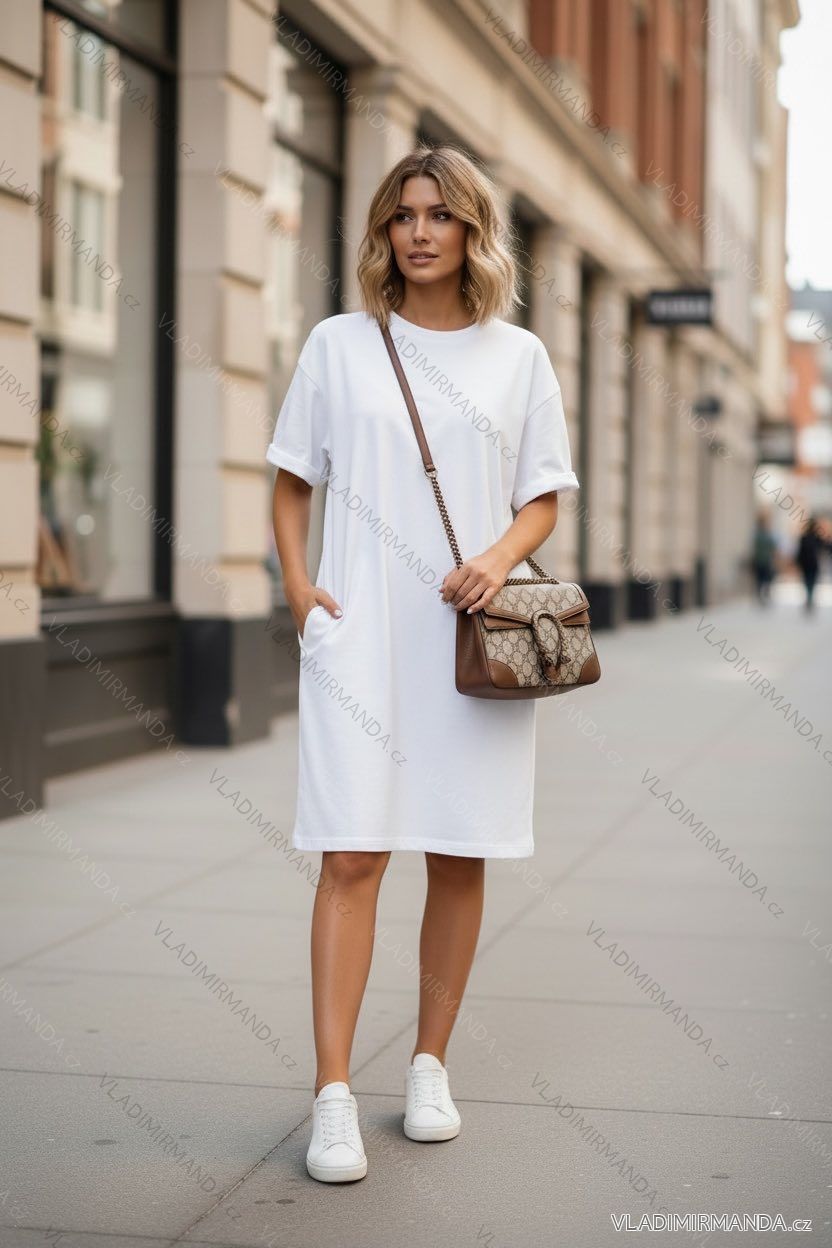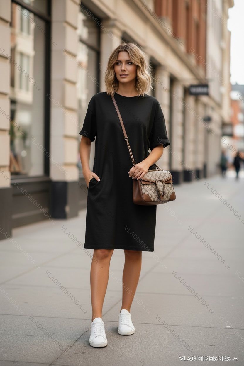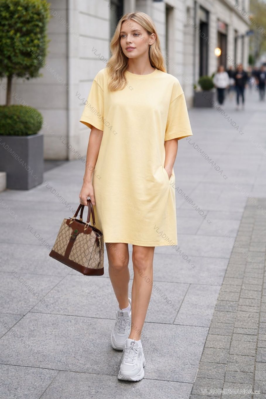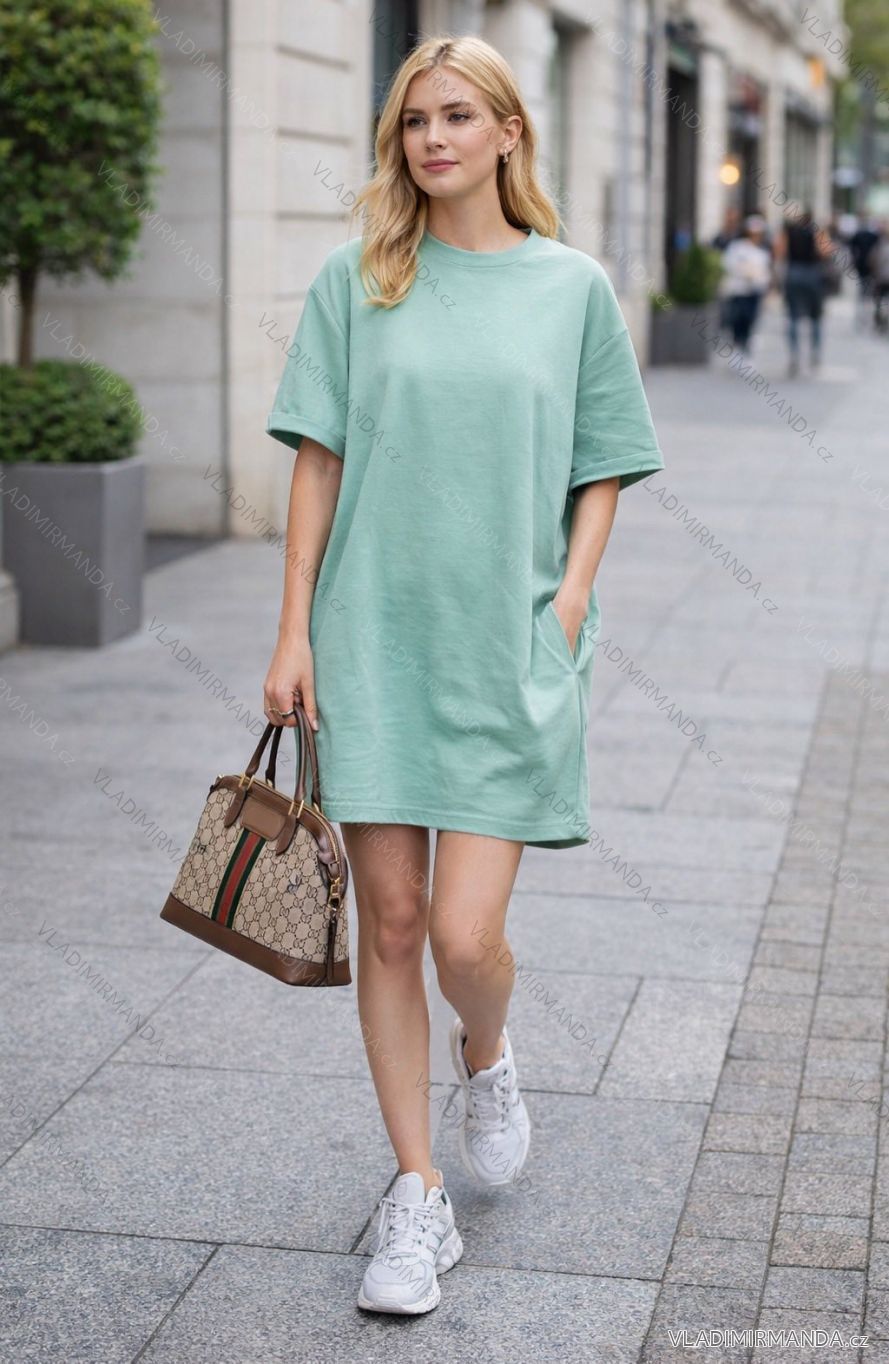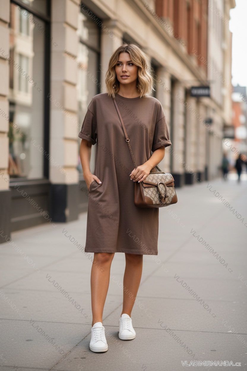 Šaty klasik voľnočasové letný krátky rukáv dámske (48/50/52 ONE SIZE) TALIANSKA MÓDA IMD26064 khaki 48/50/52