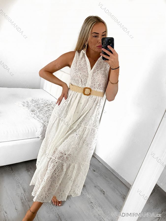 TOVAR (120768) > oblečenie dámske (82128) > šaty (31068) > šaty Boho (483) > Šaty košilové krajkované s páskem bez rukávu dámské (S/M ONE SIZE) ITALSKÁ MÓDA IMM23BR3447/DU S/M biela