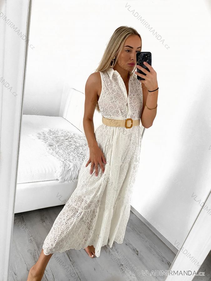 Šaty košilové krajkované s páskem bez rukávu dámské (S/M ONE SIZE) ITALSKÁ MÓDA IMM23BR3447/DU S/M biela