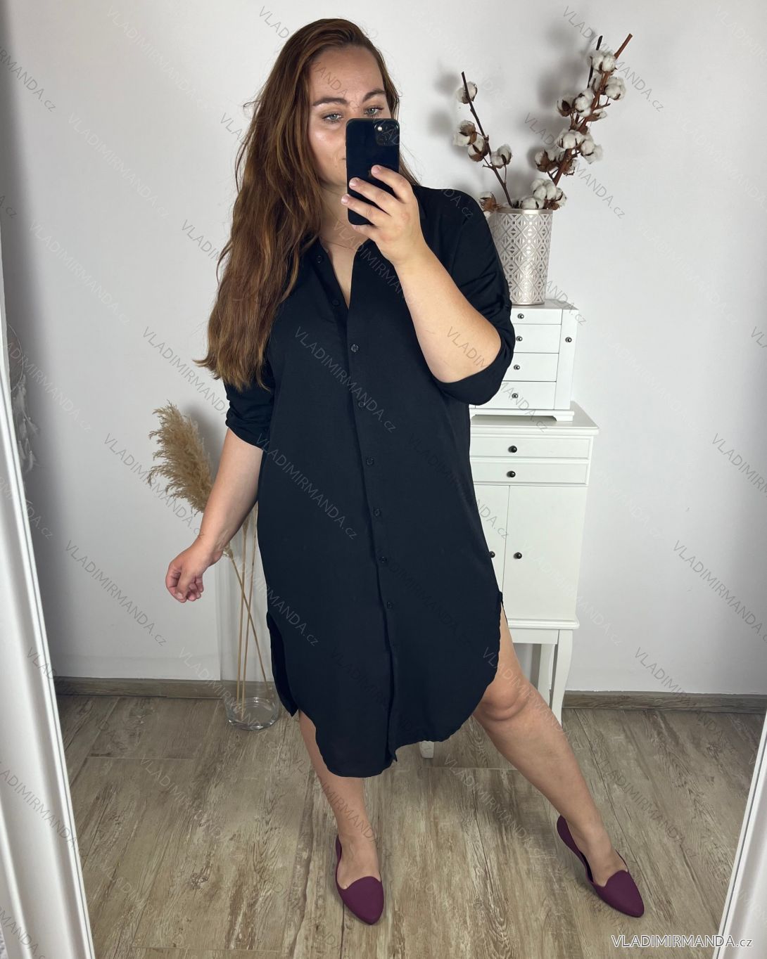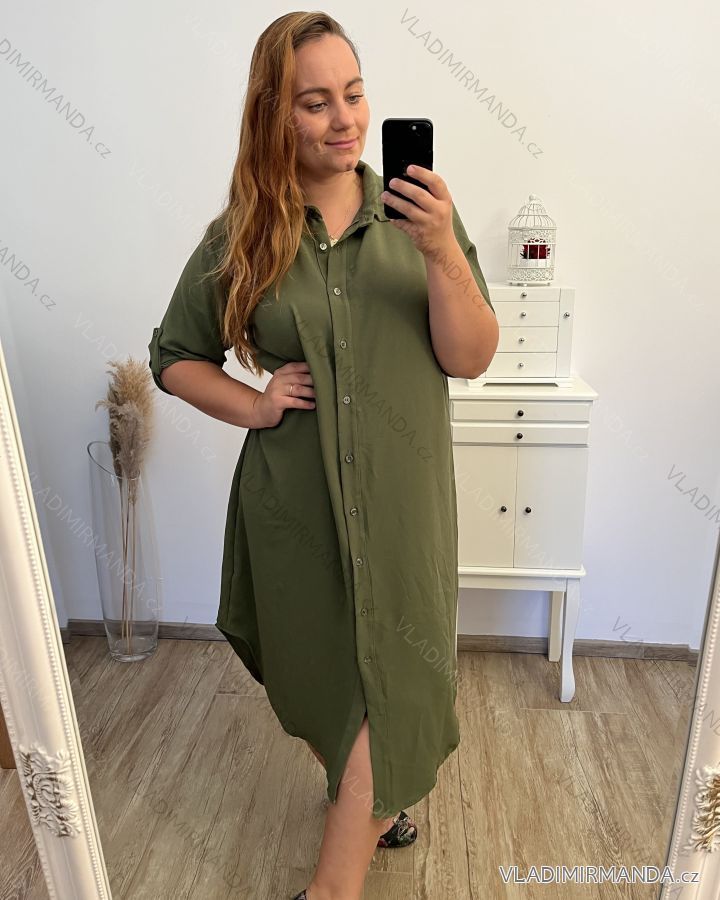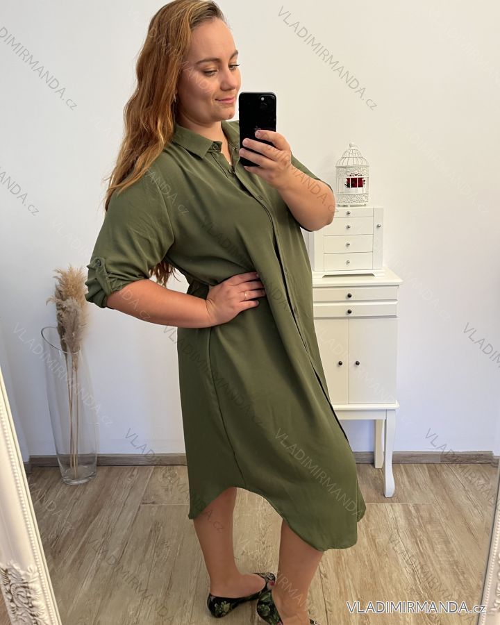 Šaty košeľové dlhý rukáv dámske nadrozměr (2XL/3XL ONE SIZE) TALIANSKA MÓDA IMD23639